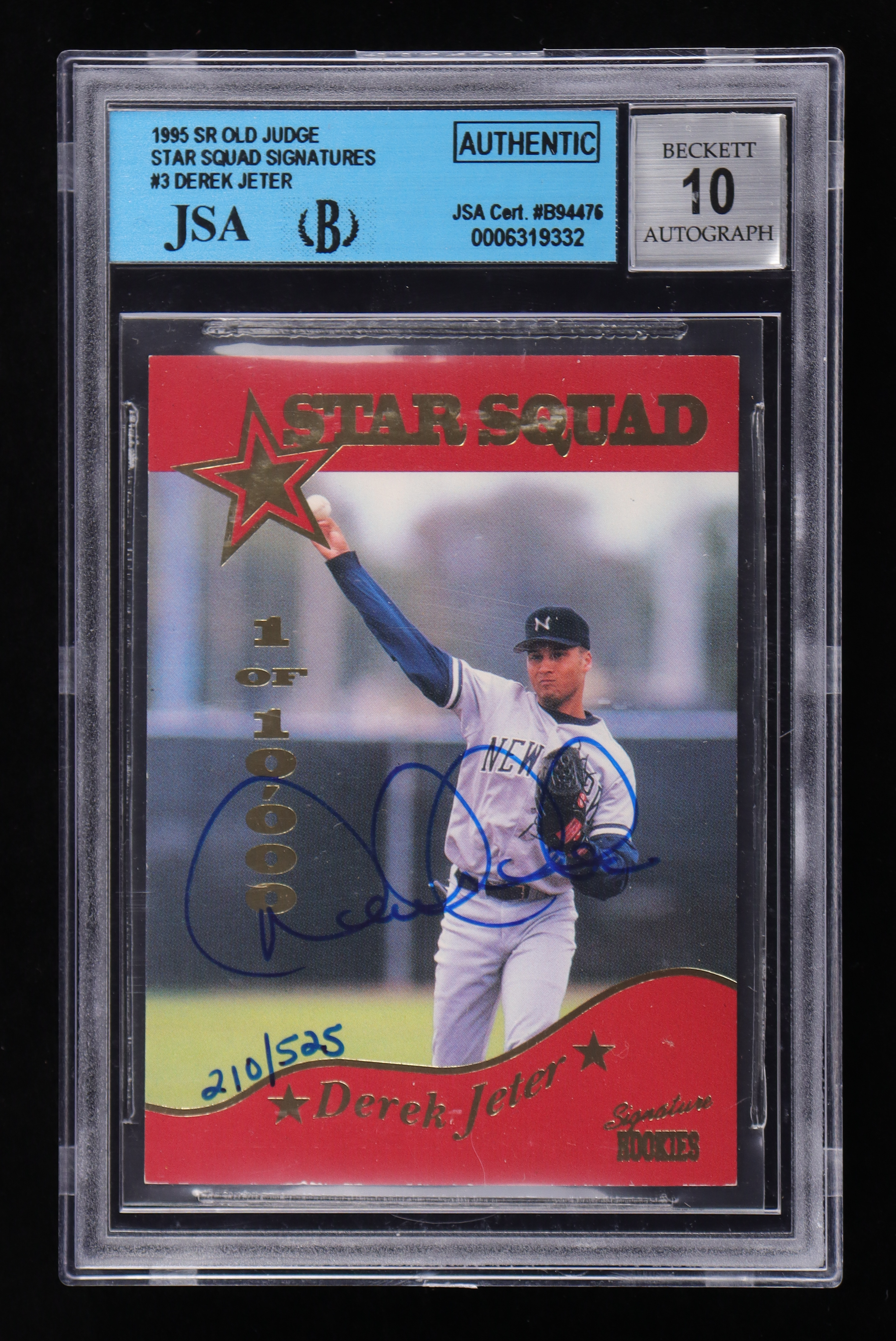 Derek Jeter 1995 Signature Rookies Old Judge Star Squad Signatures #3 #210/525 (Beckett | Autograph Graded 10)