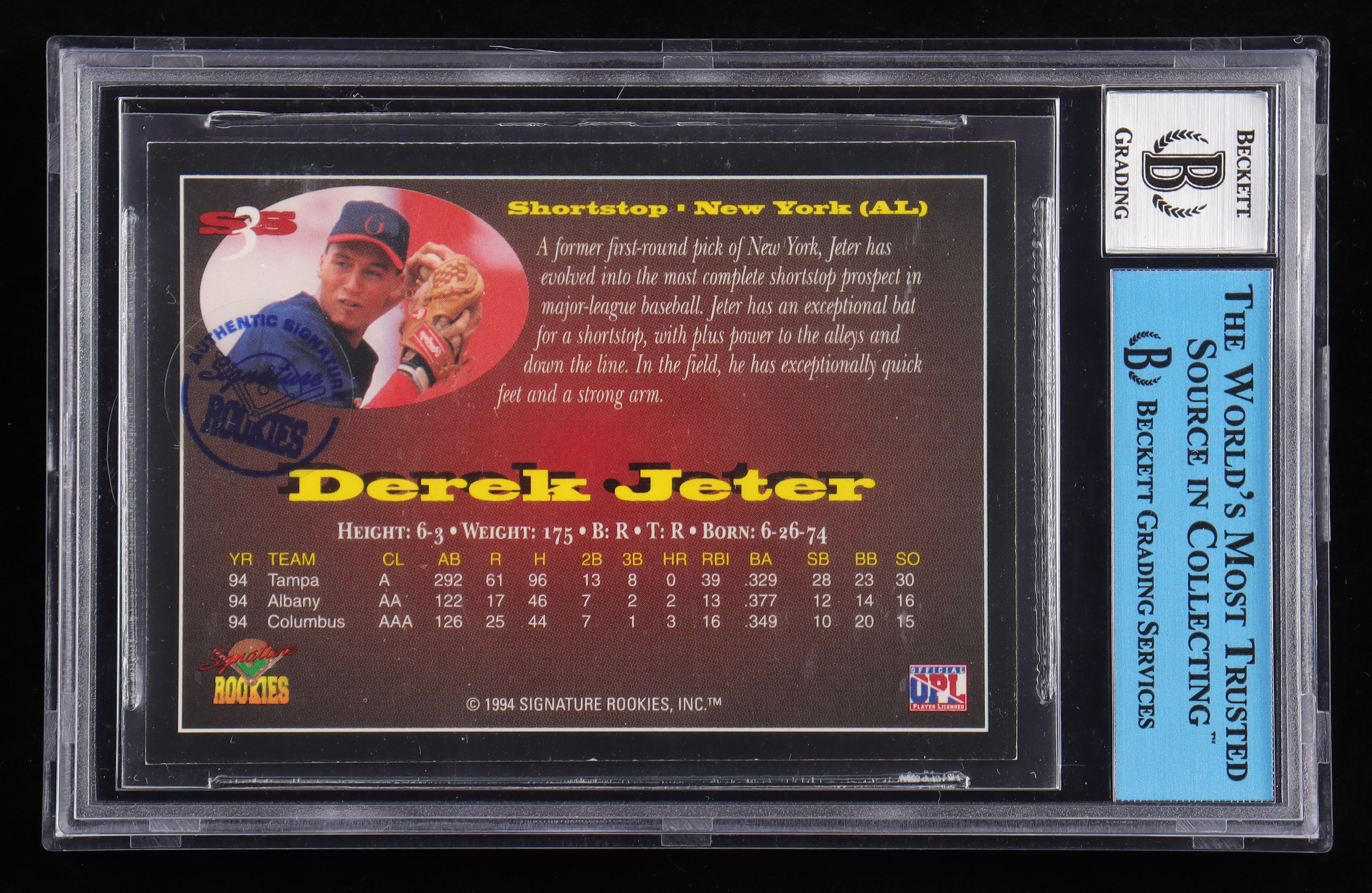 The card has been authenticated and encapsulated by Beckett for authenticity purposes.