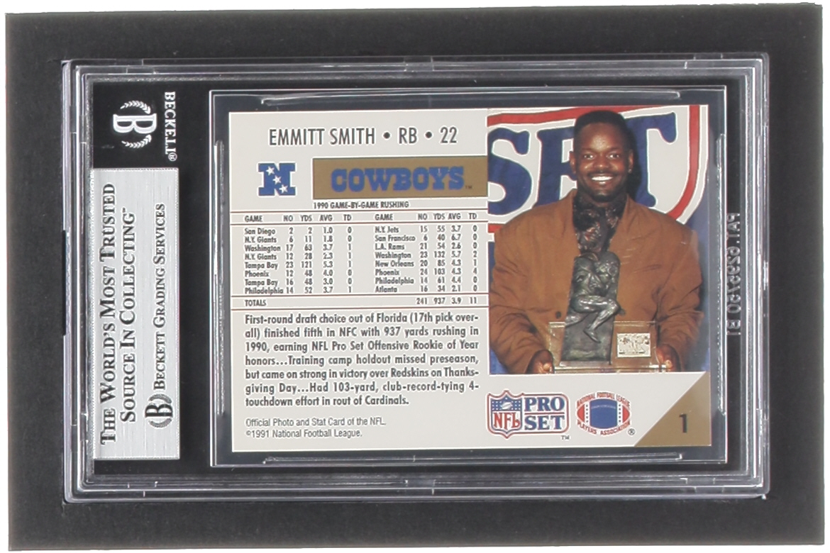 Emmitt Smith Signed 1991 Pro Set #1O O-ROY (BGS)