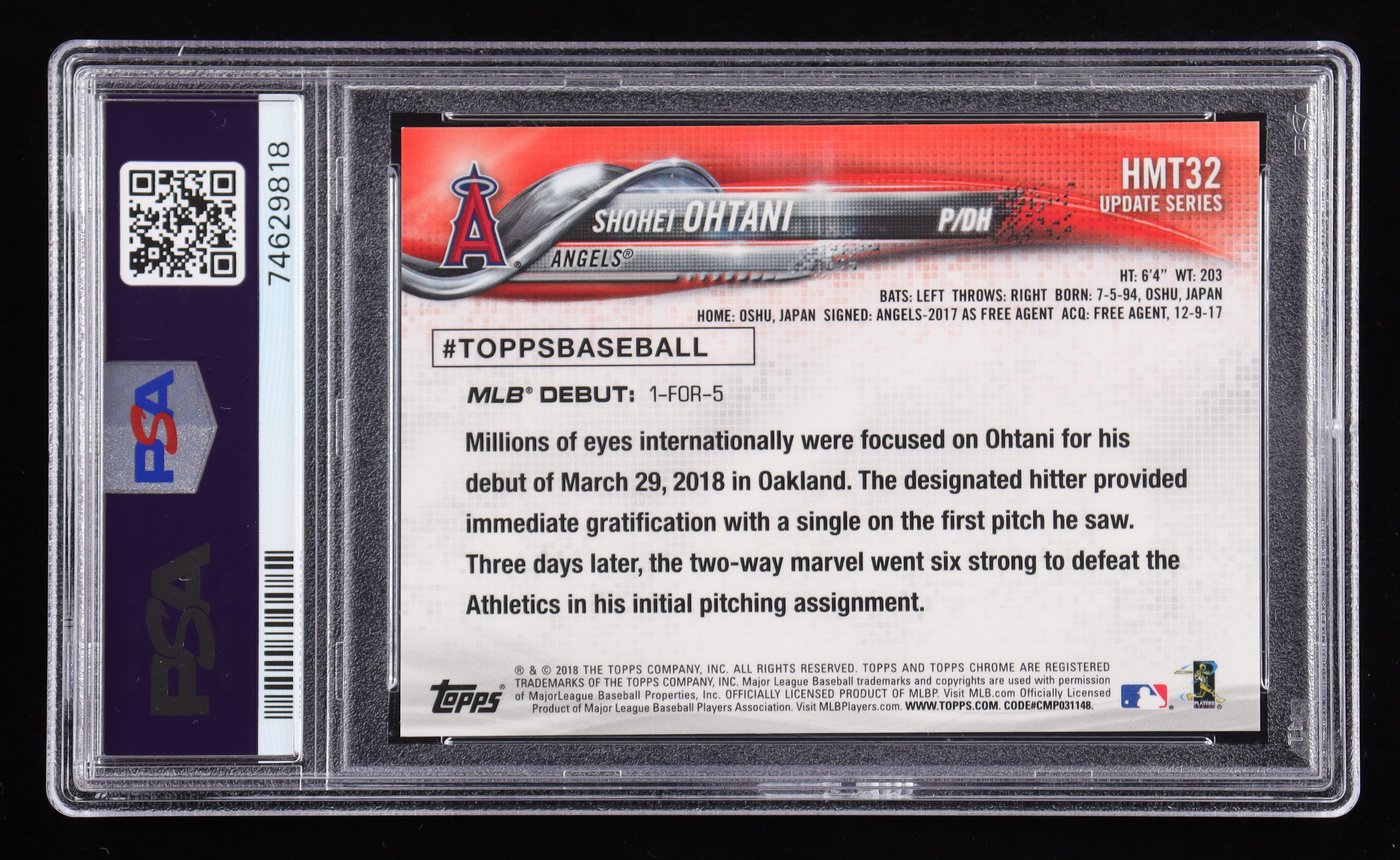 Shohei Ohtani 2018 Topps Chrome Update Pink Refractors #HMT32 RC (PSA 10)