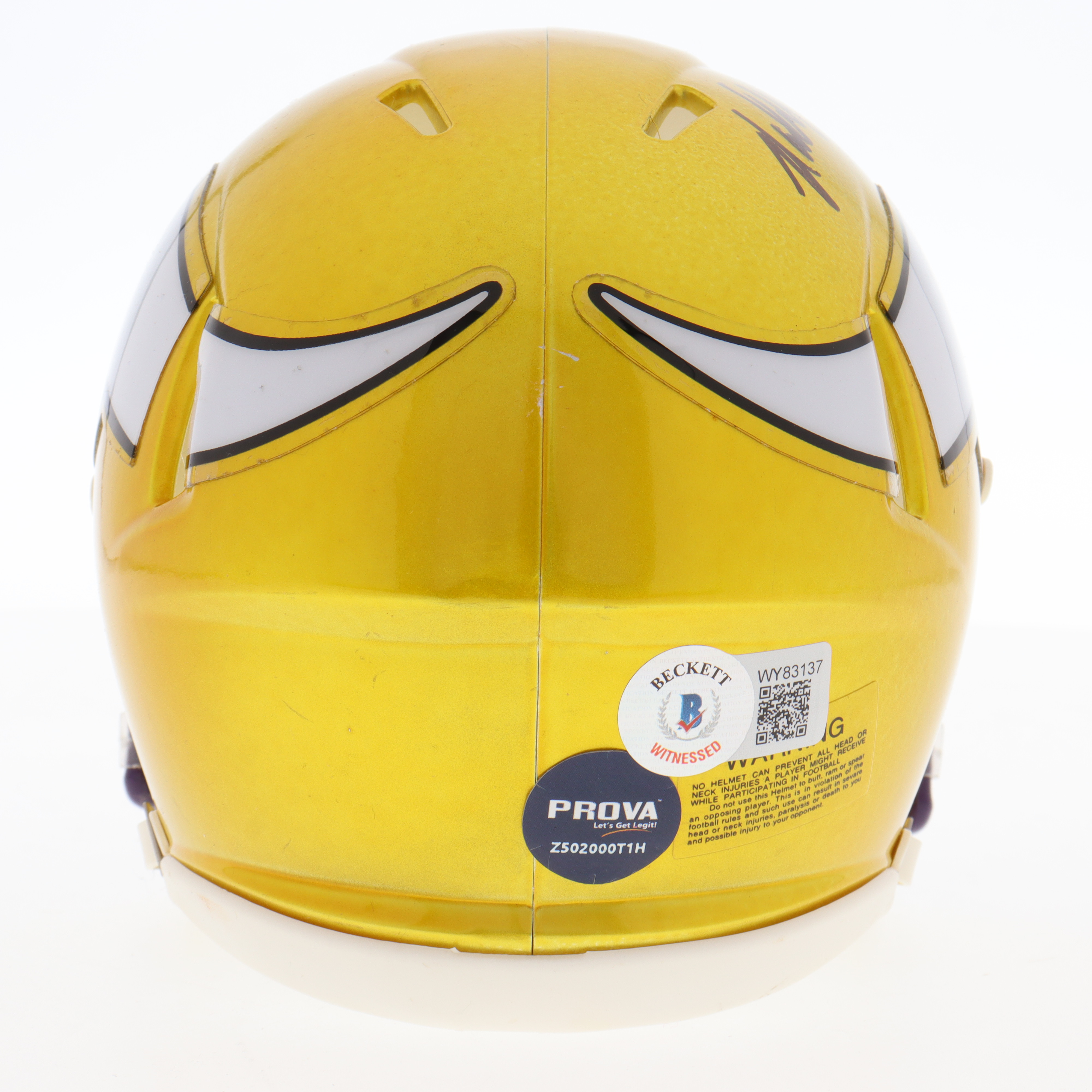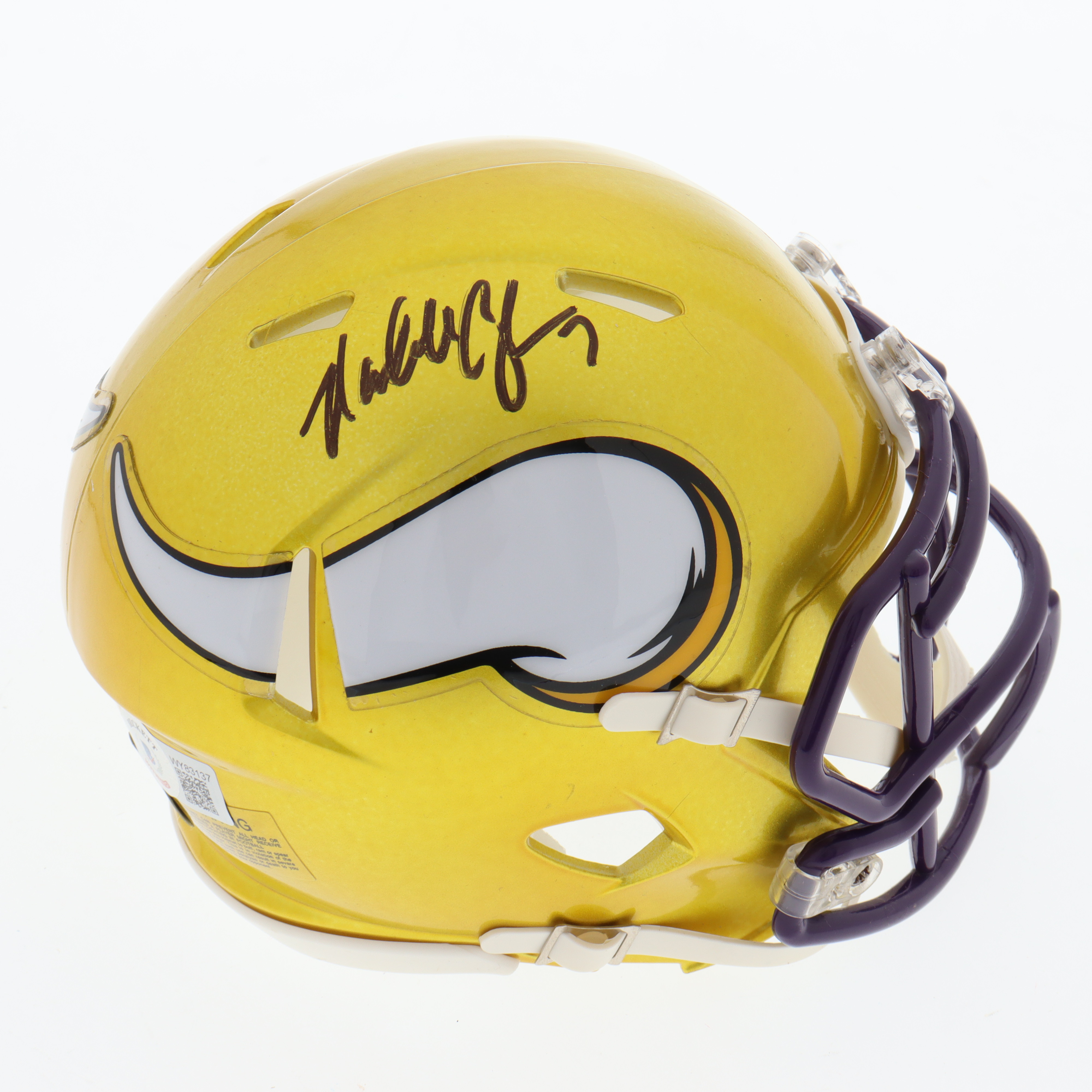 Riddell Minnesota Vikings Flash Alternate Speed mini helmet. Hand-signed by Randall Cunningham.