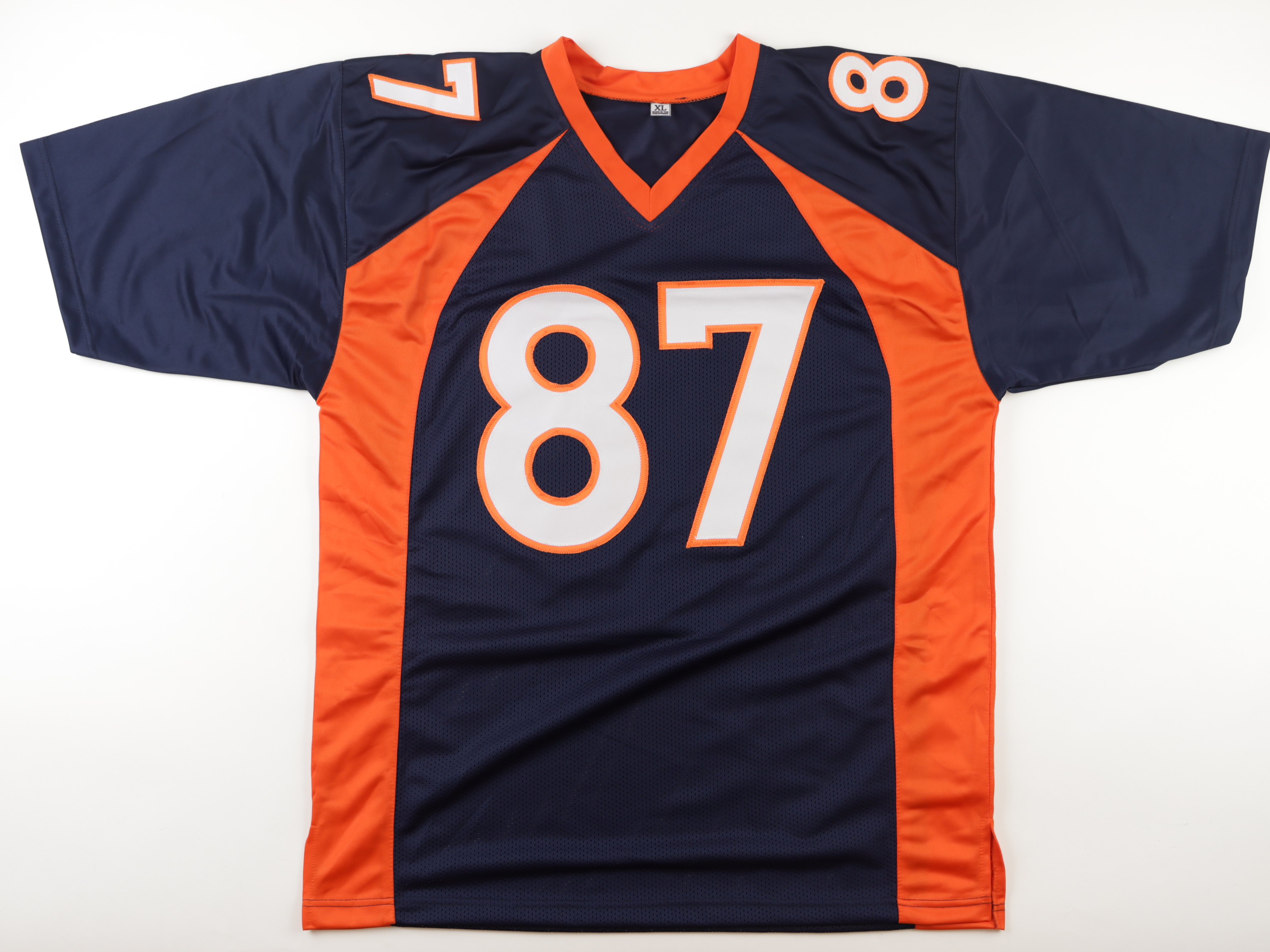 Custom jersey. Everything sewn on, size XL. Hand-signed and inscribed by Ed McCaffrey.