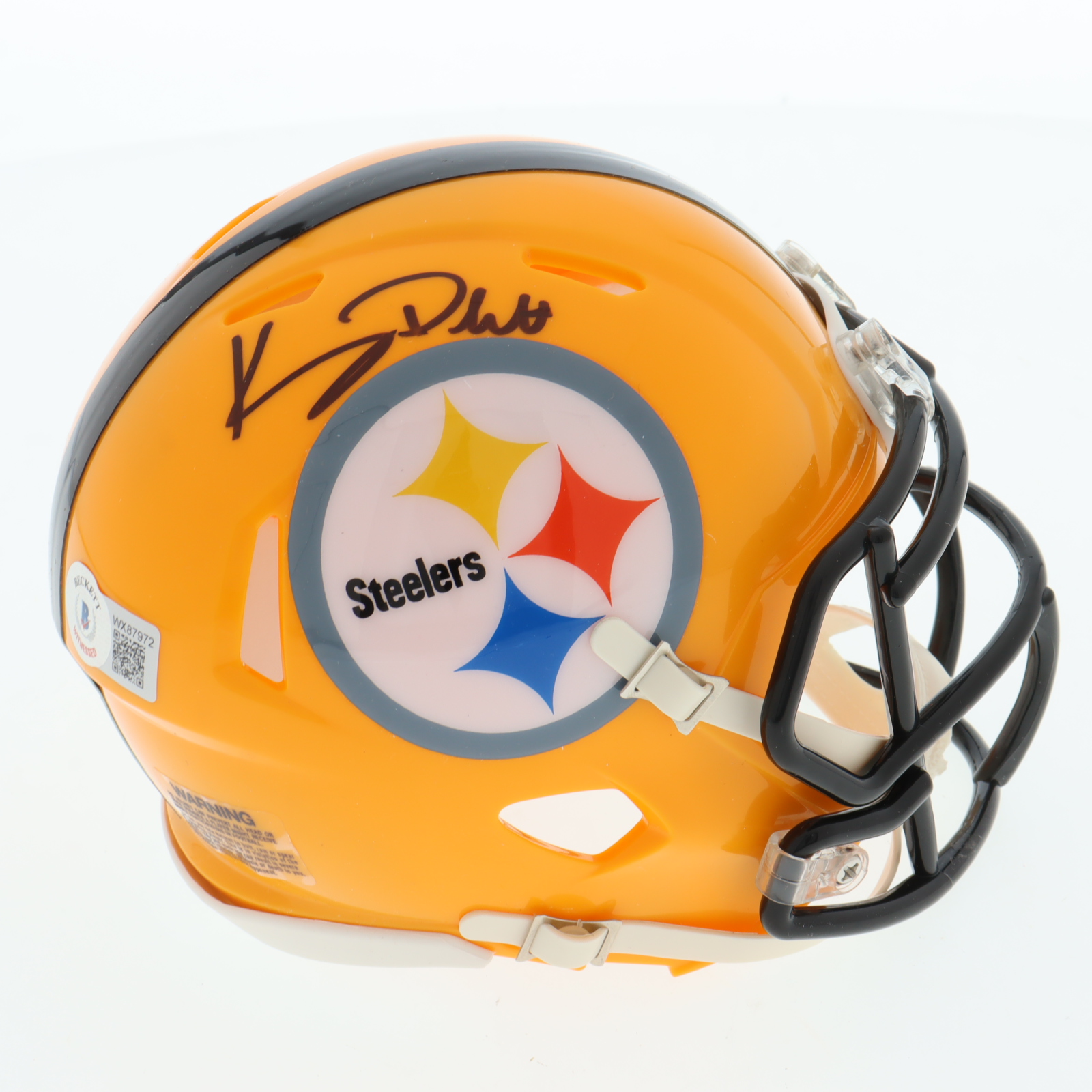 Riddell Pittsburgh Steelers speed mini helmet. Hand-signed by Kenny Pickett.