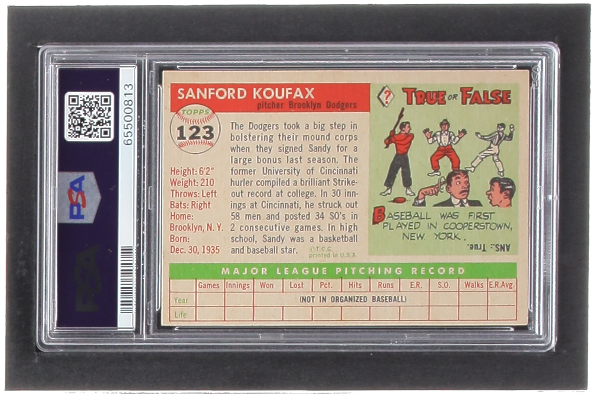 Sandy Koufax 1955 Topps #123 RC (PSA 6)
