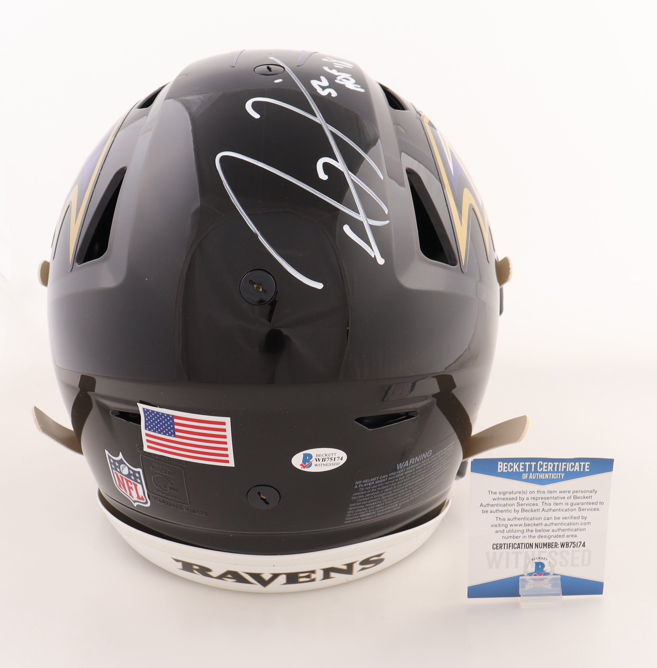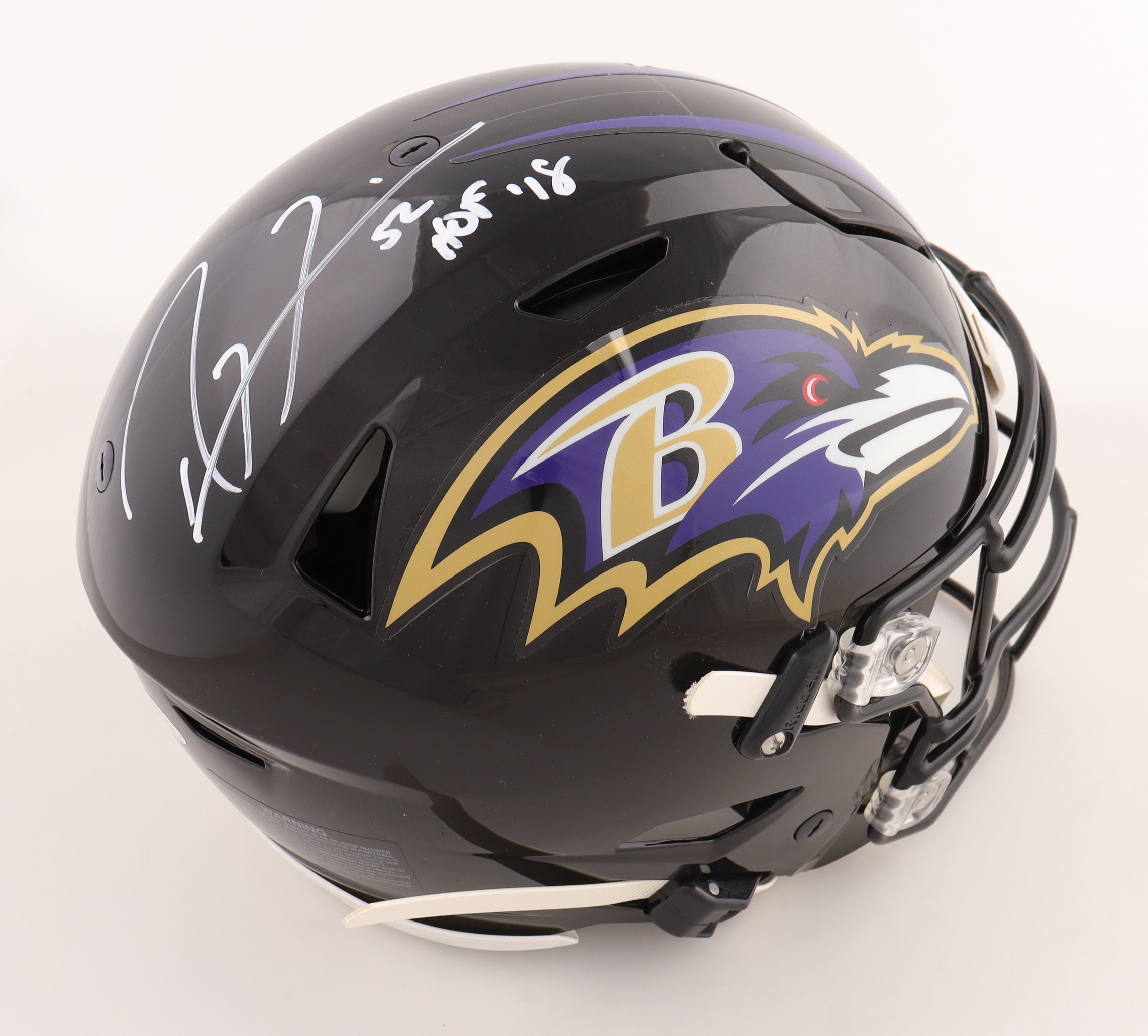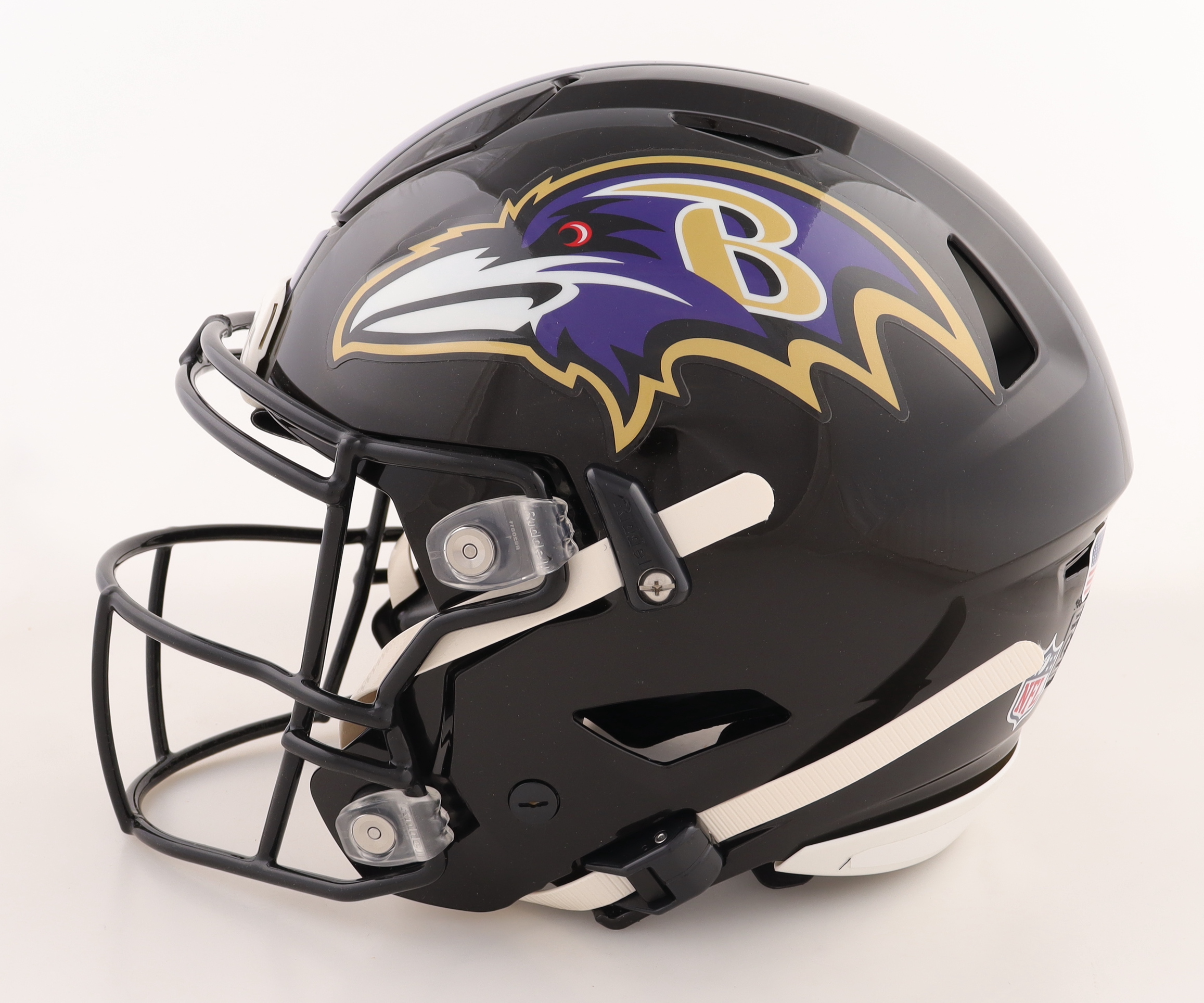 Riddell Baltimore Ravens full-size authentic on-field SpeedFlex helmet. Hand-signed and inscribed by Ray Lewis (HOF).