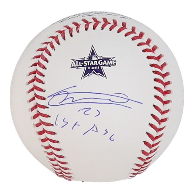 Rawlings Official 2021 All-Star Game Baseball. Hand-signed and inscribed by Vladimir Guerrero Jr. (Toronto Blue Jays).