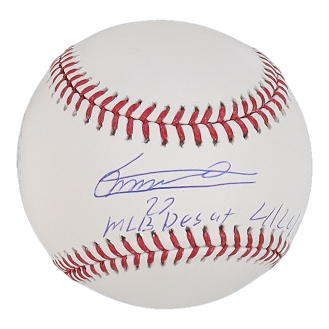 Vladimir Guerrero Jr. Signed OML Baseball Inscribed "MLB Debut 4/26/14" (JSA & Guerrero)