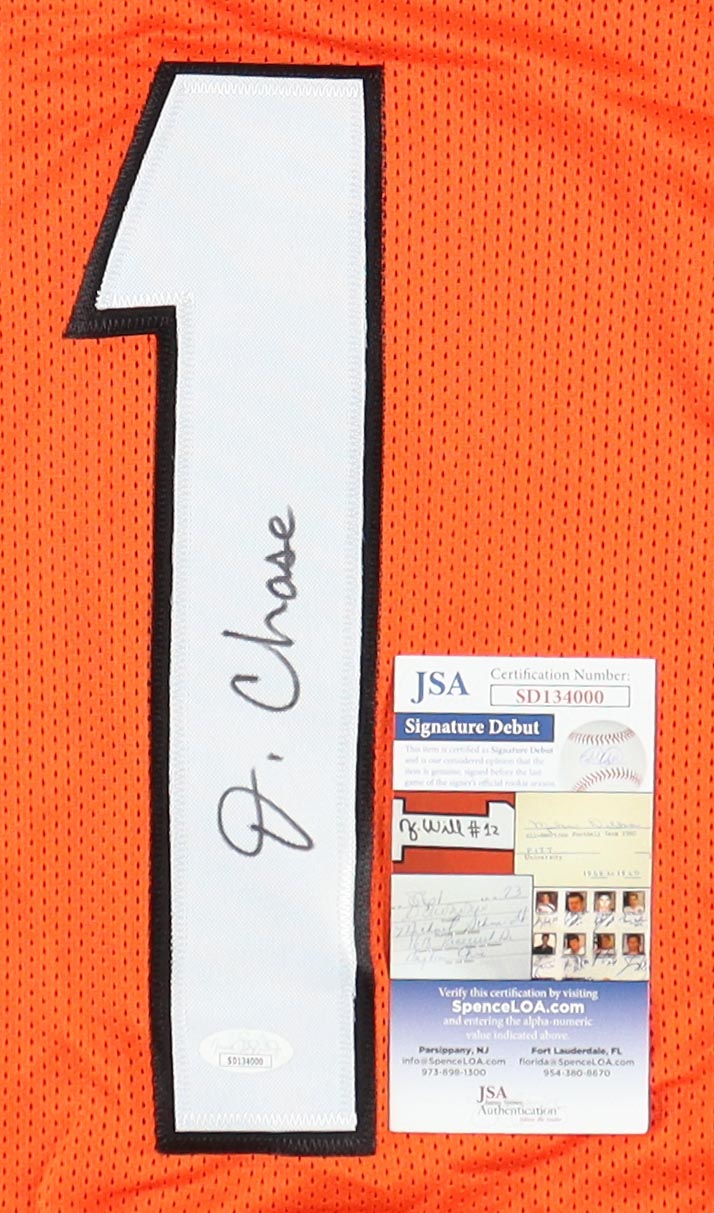 Custom jersey with everything sewn on, size XL. Hand-signed by Ja'Marr Chase.