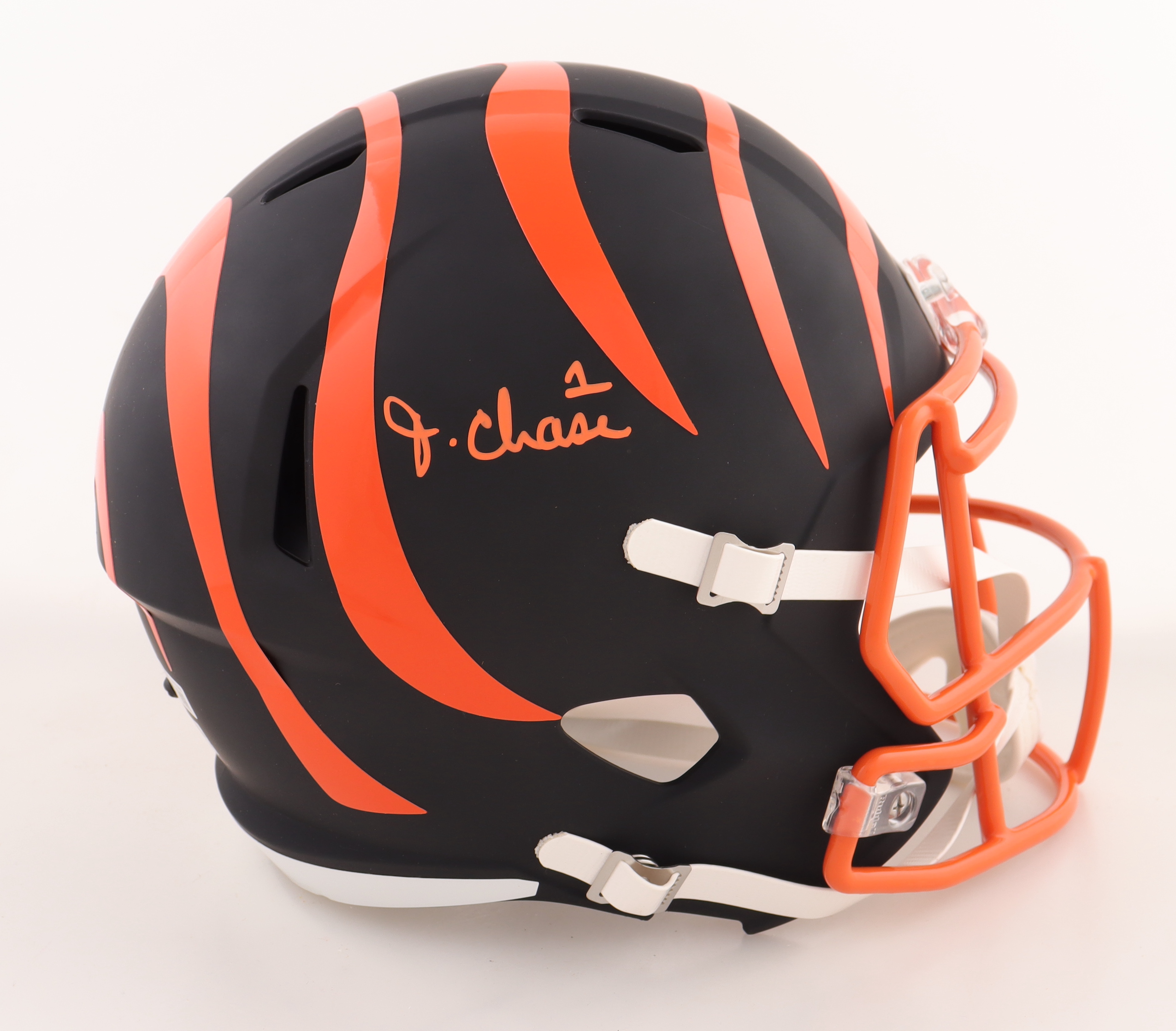 Riddell Cincinnati Bengals full-size matte black Speed replica helmet. Hand-signed by Ja'Marr Chase.