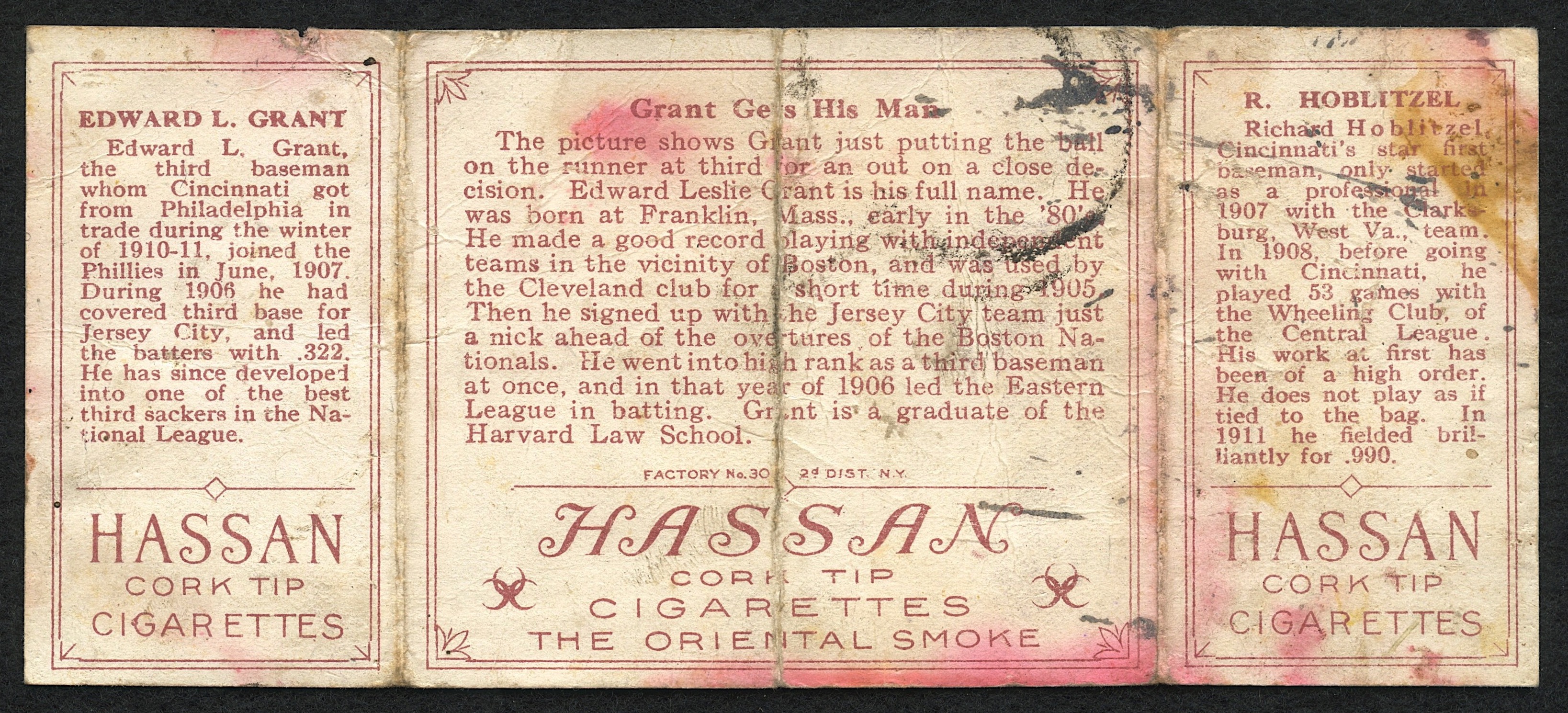 1912 Hassan Triple Folders T202 #69 Grant Gets His Man / Eddie Grant / Doc Hoblitzel