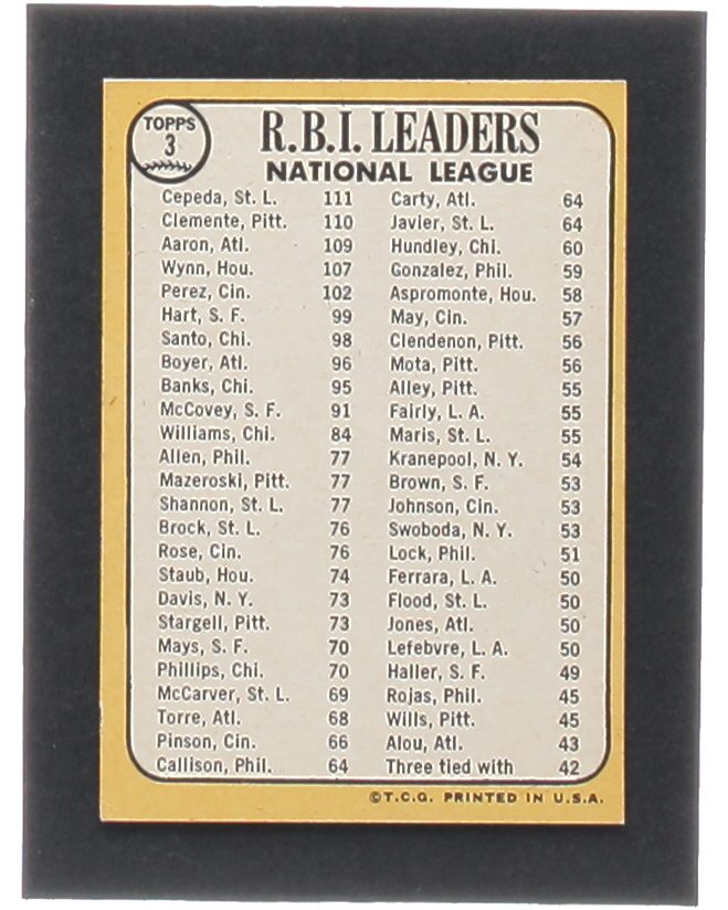 Orlando Cepeda / Roberto Clemente / Hank Aaron 1968 Topps #3 NL RBI Leaders