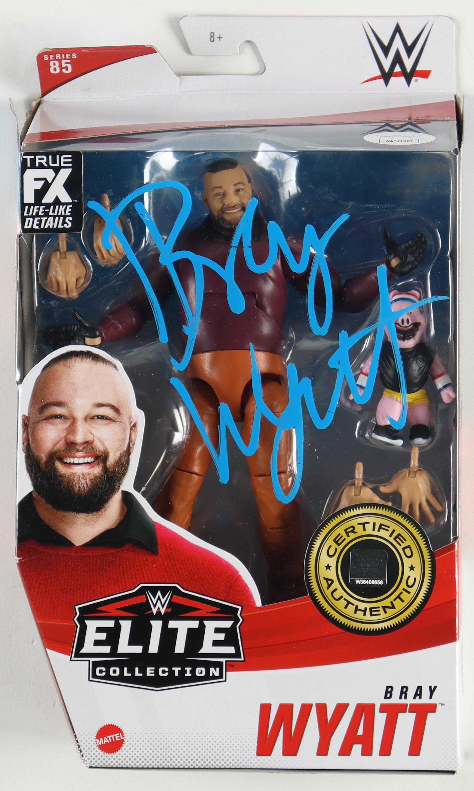 Mattel WWE Elite Collection Series 85 action figure. Hand-signed on the box by Bray Wyatt. Please note there is damage to the packaging.