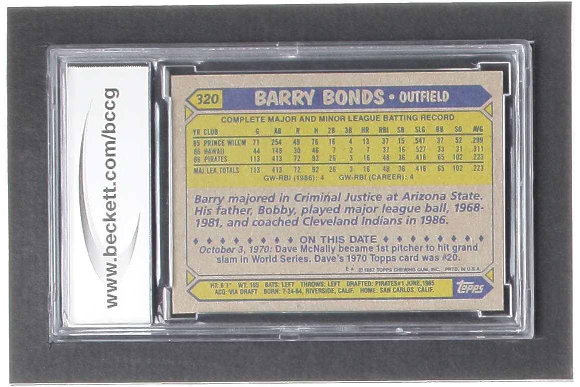 Barry Bonds 1987 Topps #320 RC (BCCG 9)