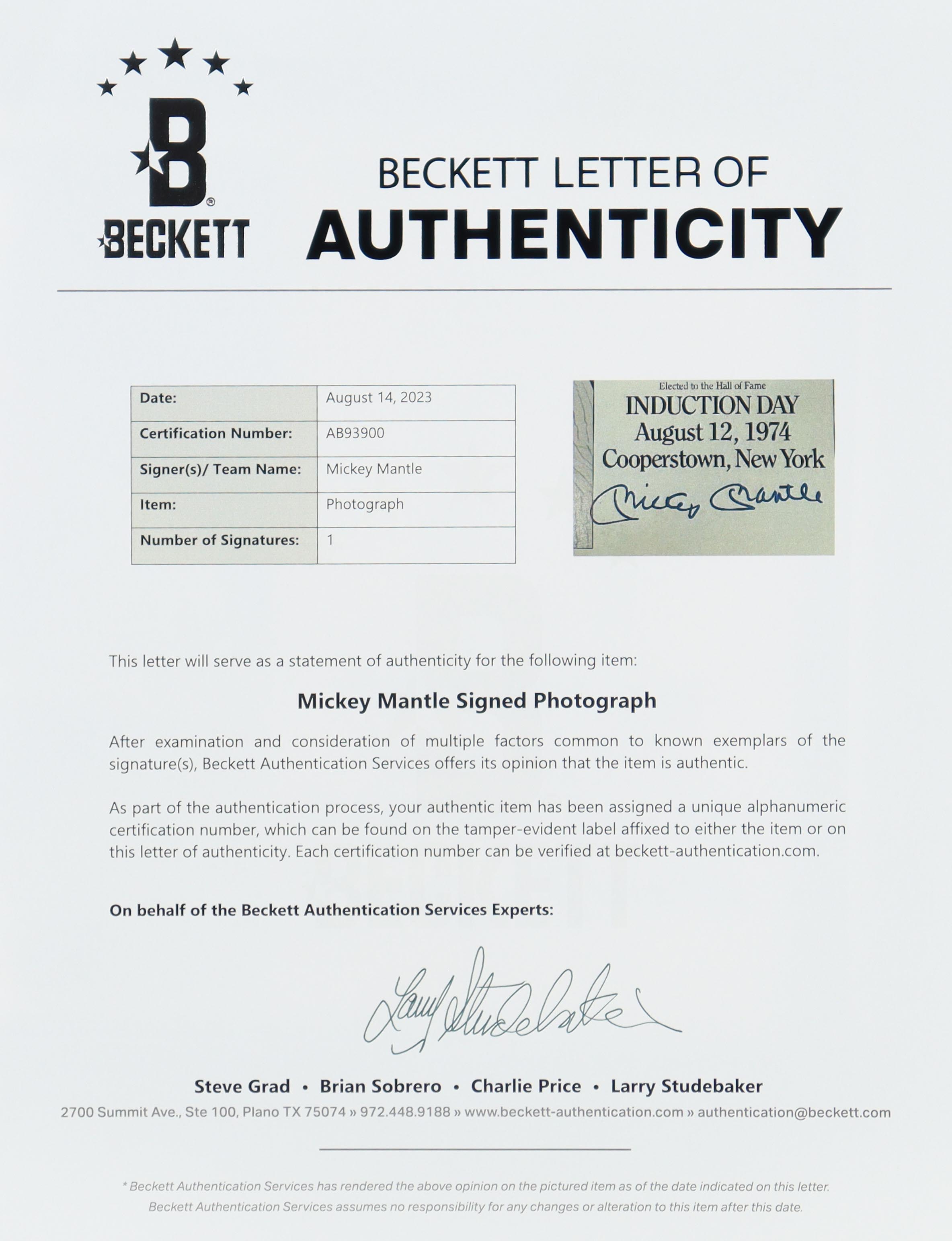 The autograph includes an official Beckett Authentication Services hologram and matching LOA for authenticity purposes.