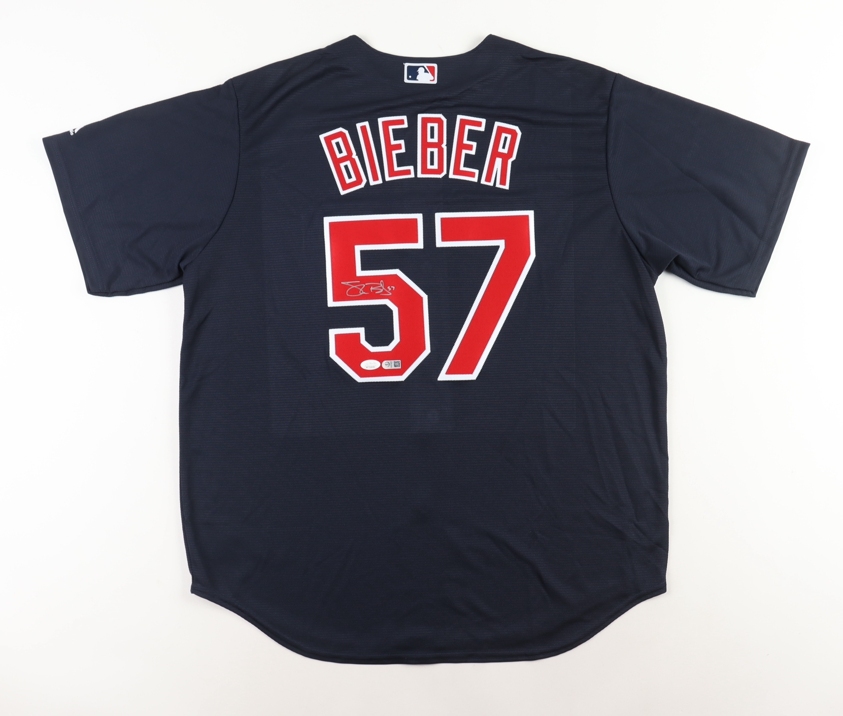 Majestic jersey with everything sewn on, size XL. Hand-signed by Shane Bieber (Cleveland Guardians).