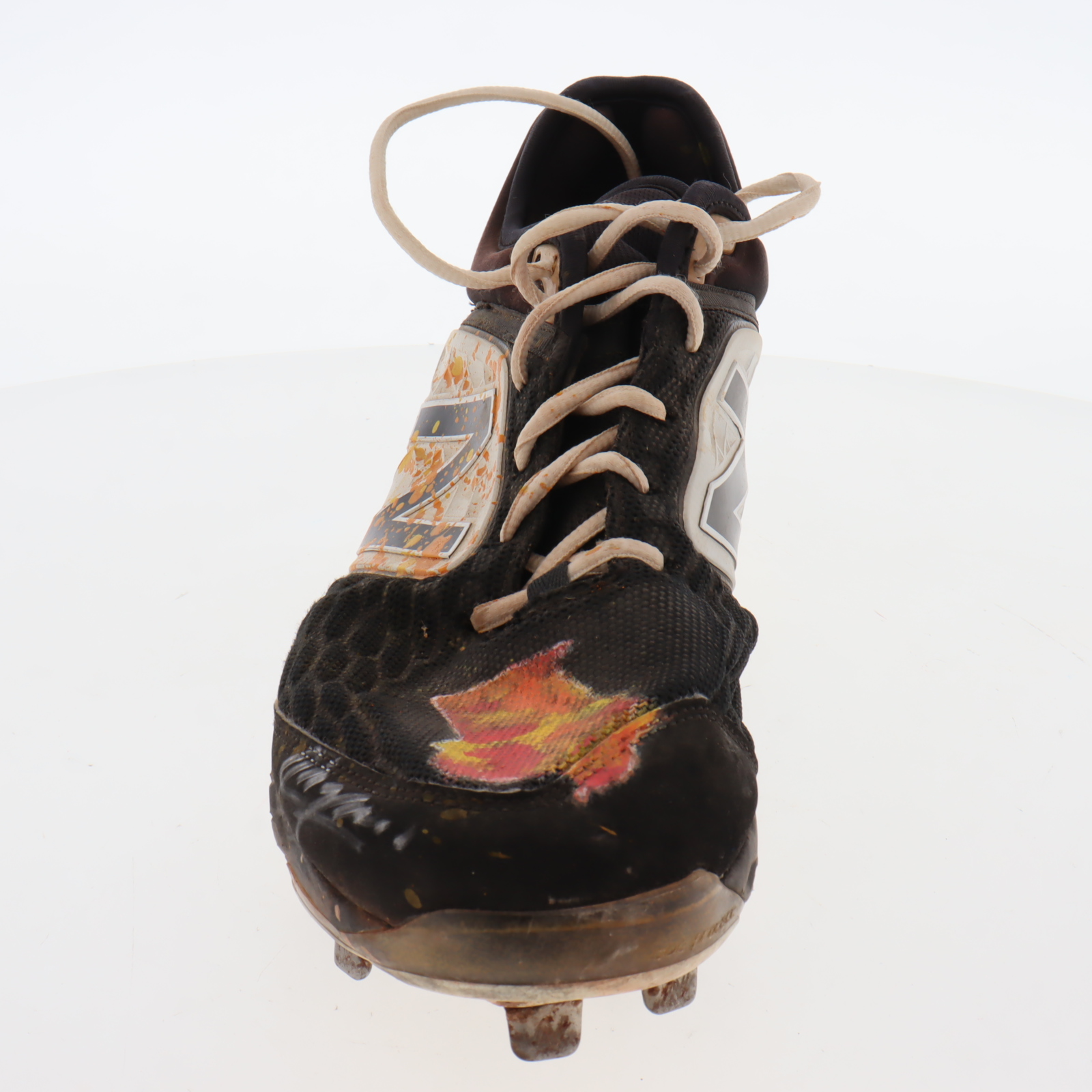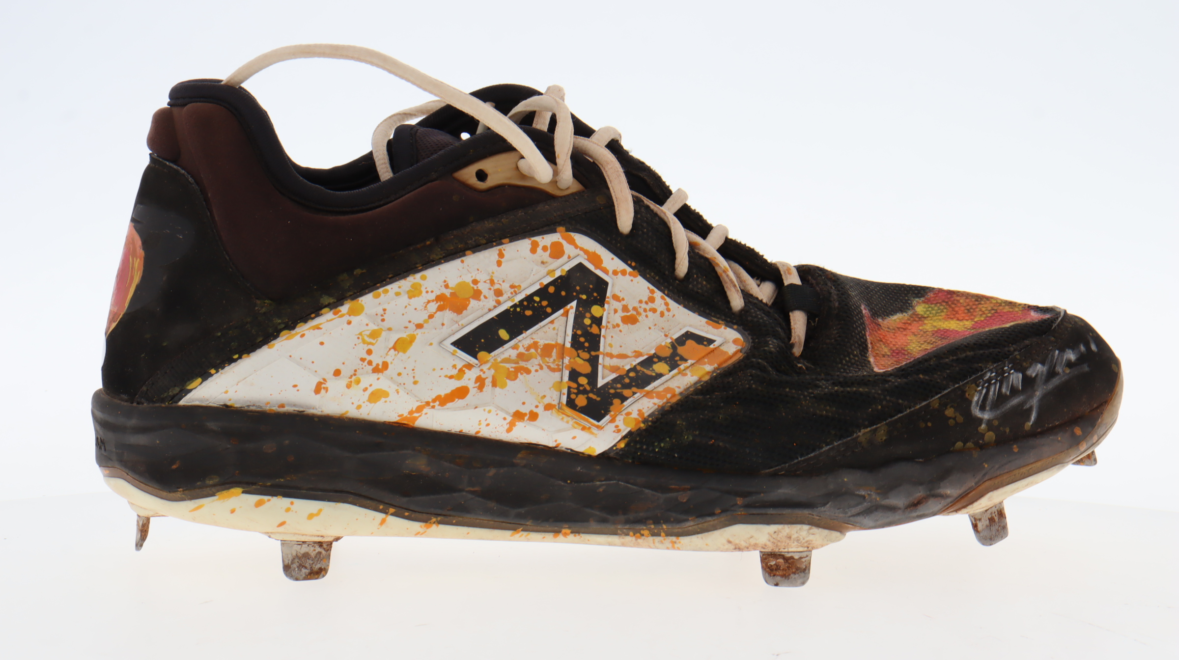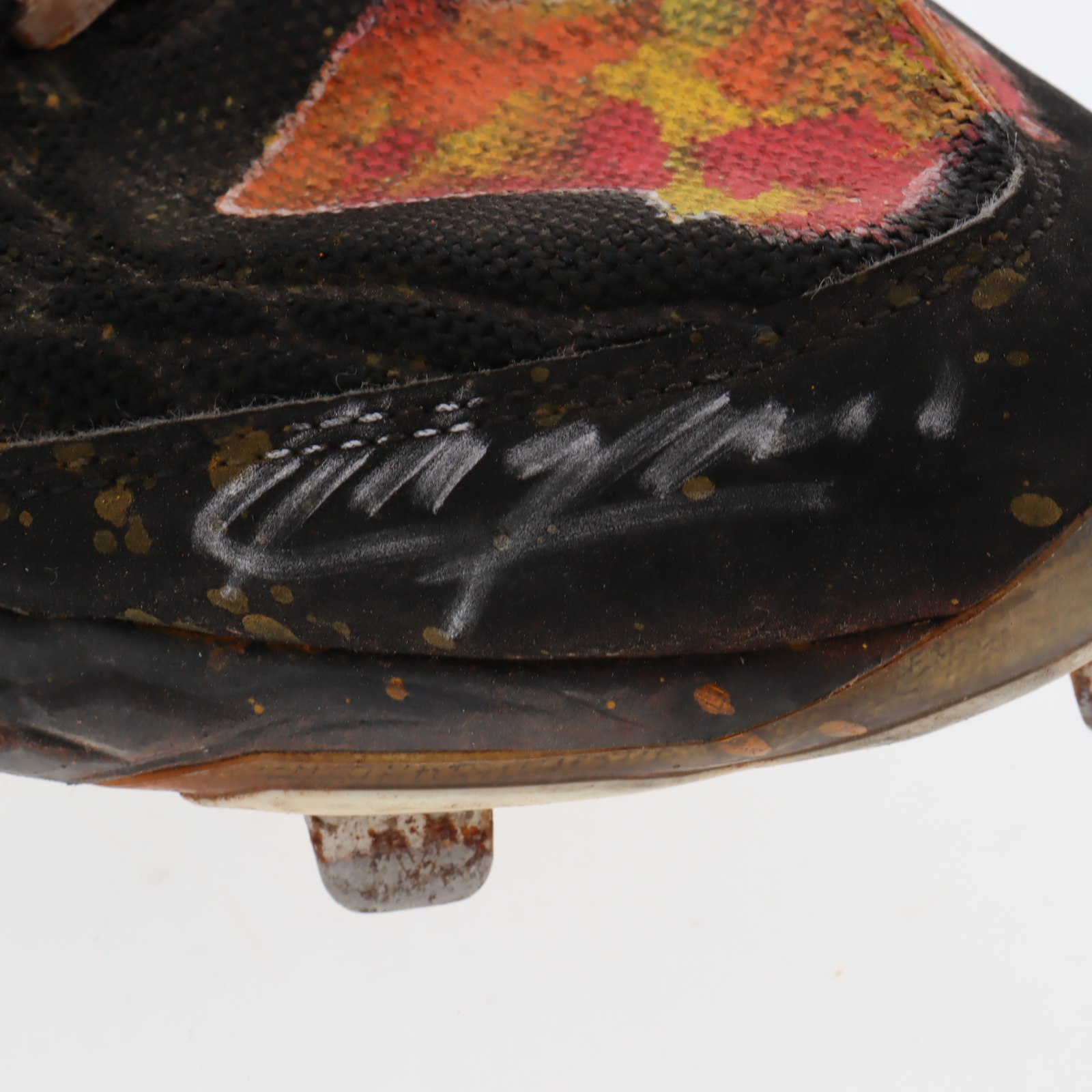 New Balance baseball cleat, size 11.5. Hand-signed by Aroldis Chapman (Texas Rangers). Cleat shows signs of wear. Please note, the cleat has been game-used by an unknown player and there is custom paint job on the cleats.