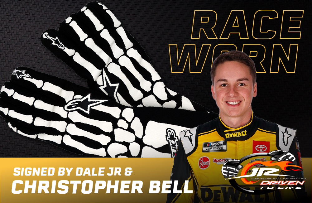 The winning bidder of this auction will receive Christopher Bell's race worn and signed NASCAR gloves from Bristol weekend. The gloves will also be hand-signed by Dale Earnhardt Jr.
