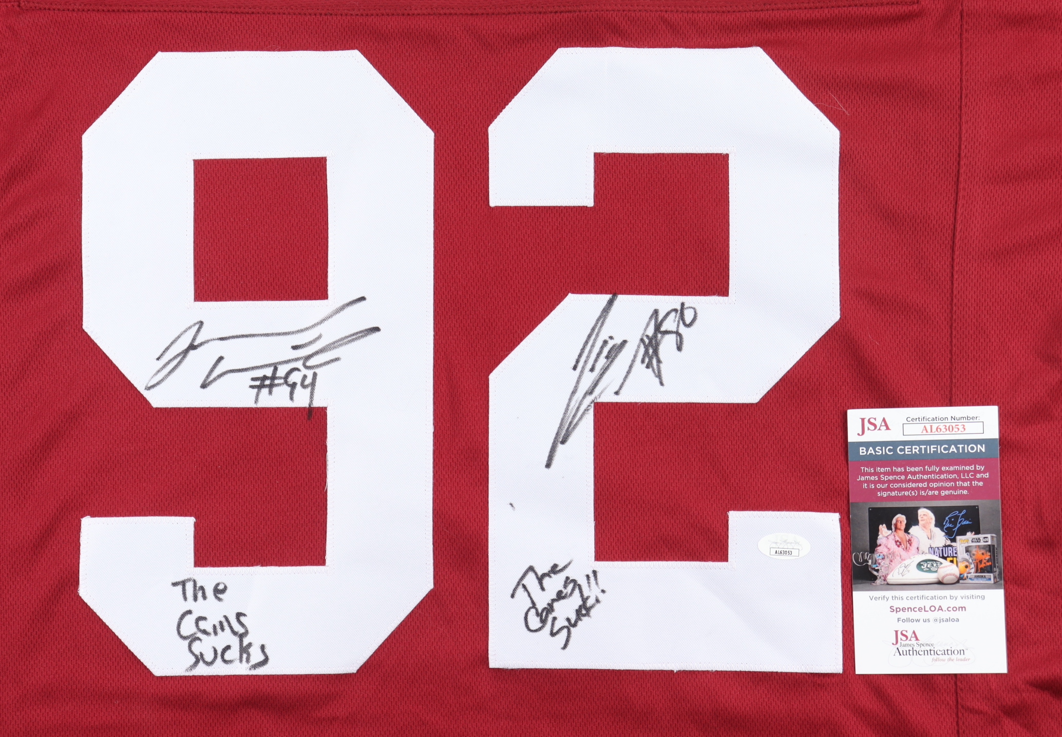 Eric Curry & John Copeland Signed Jersey Inscribed "The Canes Suck!!" (JSA)