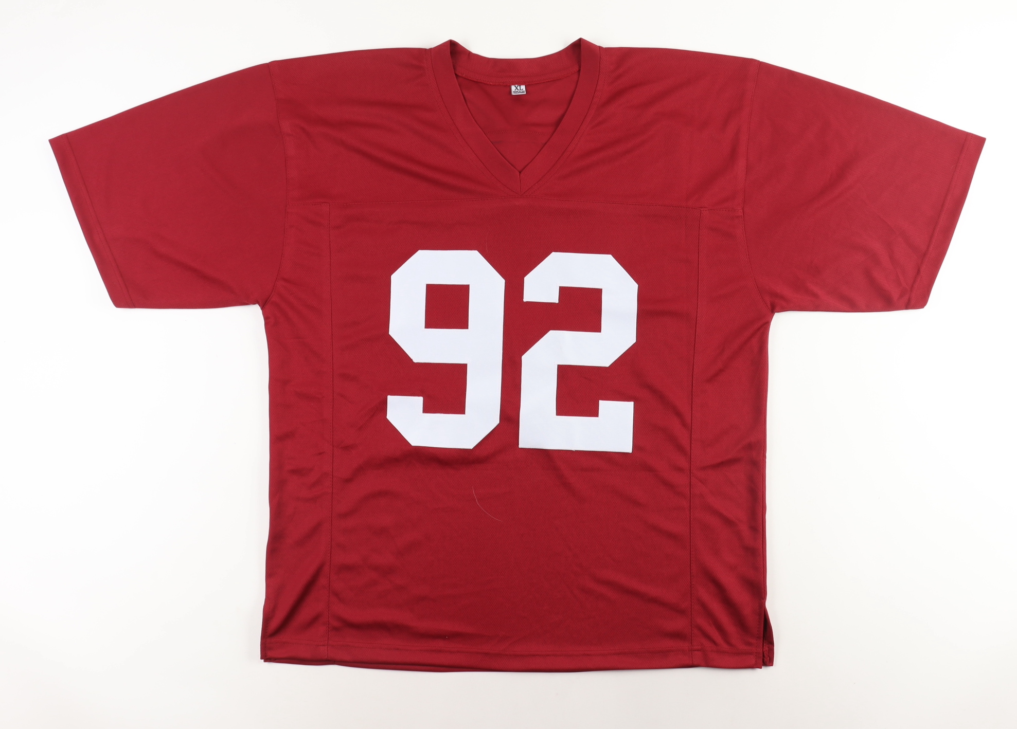 Custom jersey with everything sewn on, size XL. Hand-signed and inscribed by Eric Curry and John Copeland.