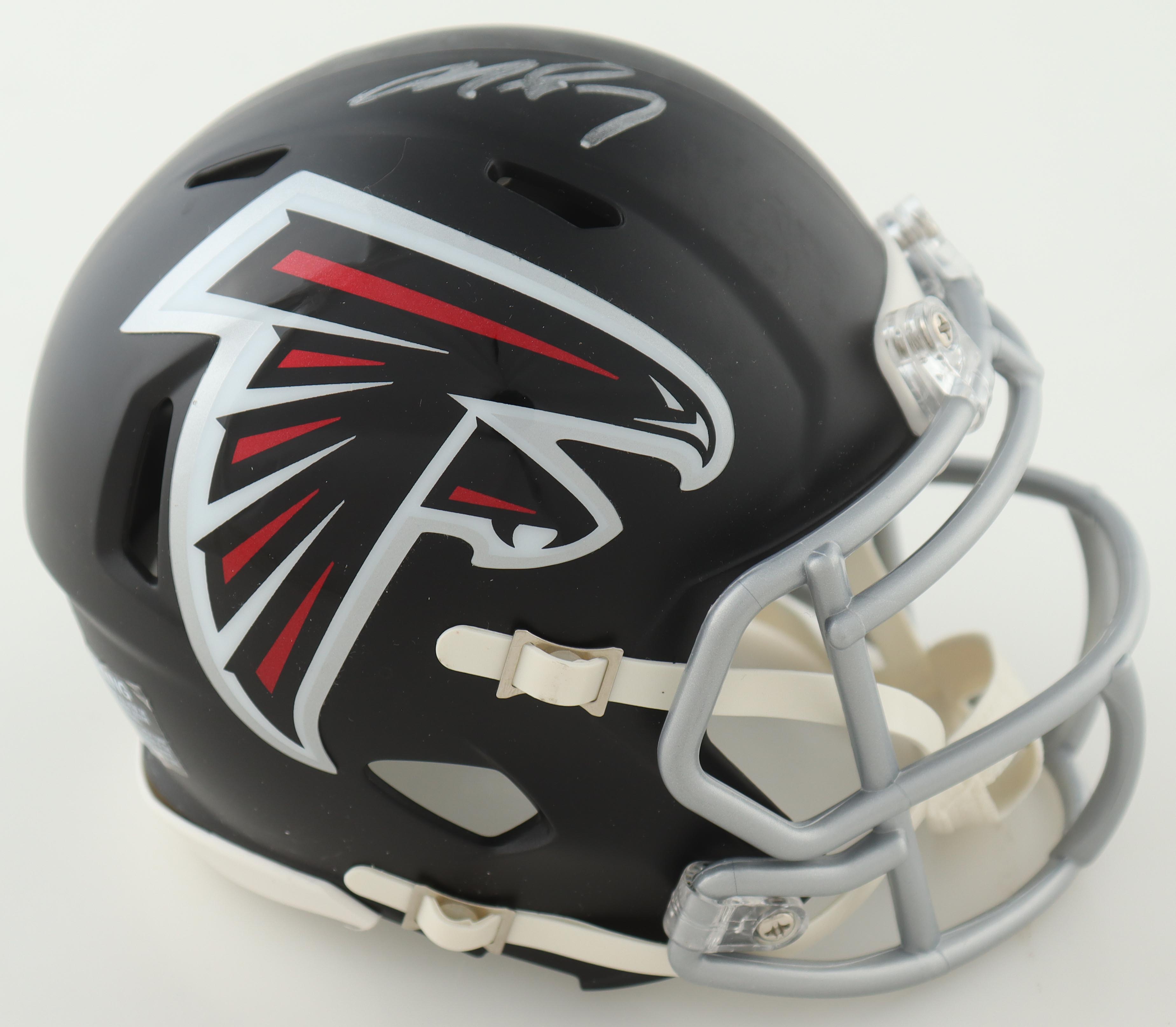 Riddell Atlanta Falcons Speed mini helmet has been hand-signed by Michael Vick.