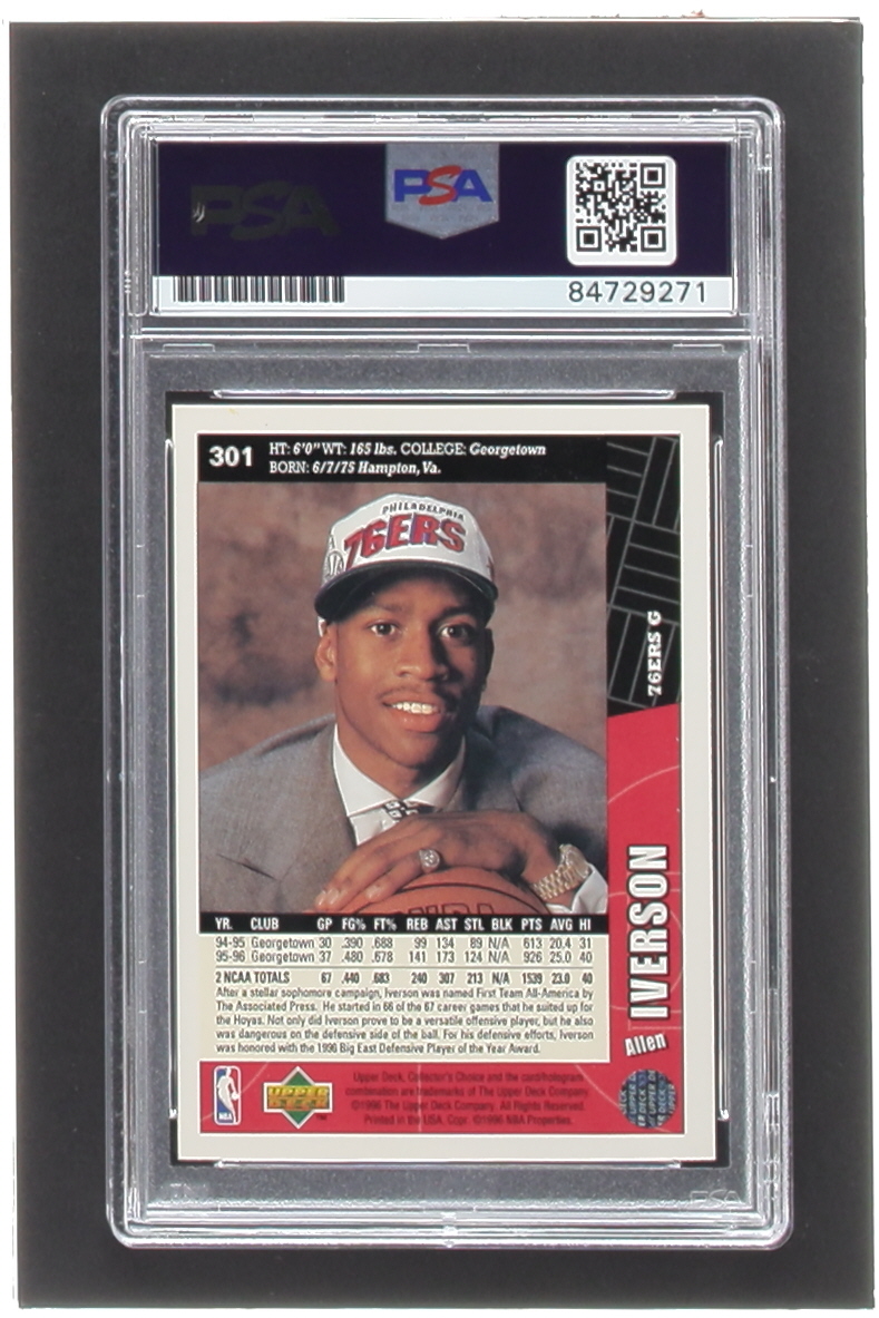 Allen Iverson Signed 1996-97 Collector's Choice #301 RC (PSA)