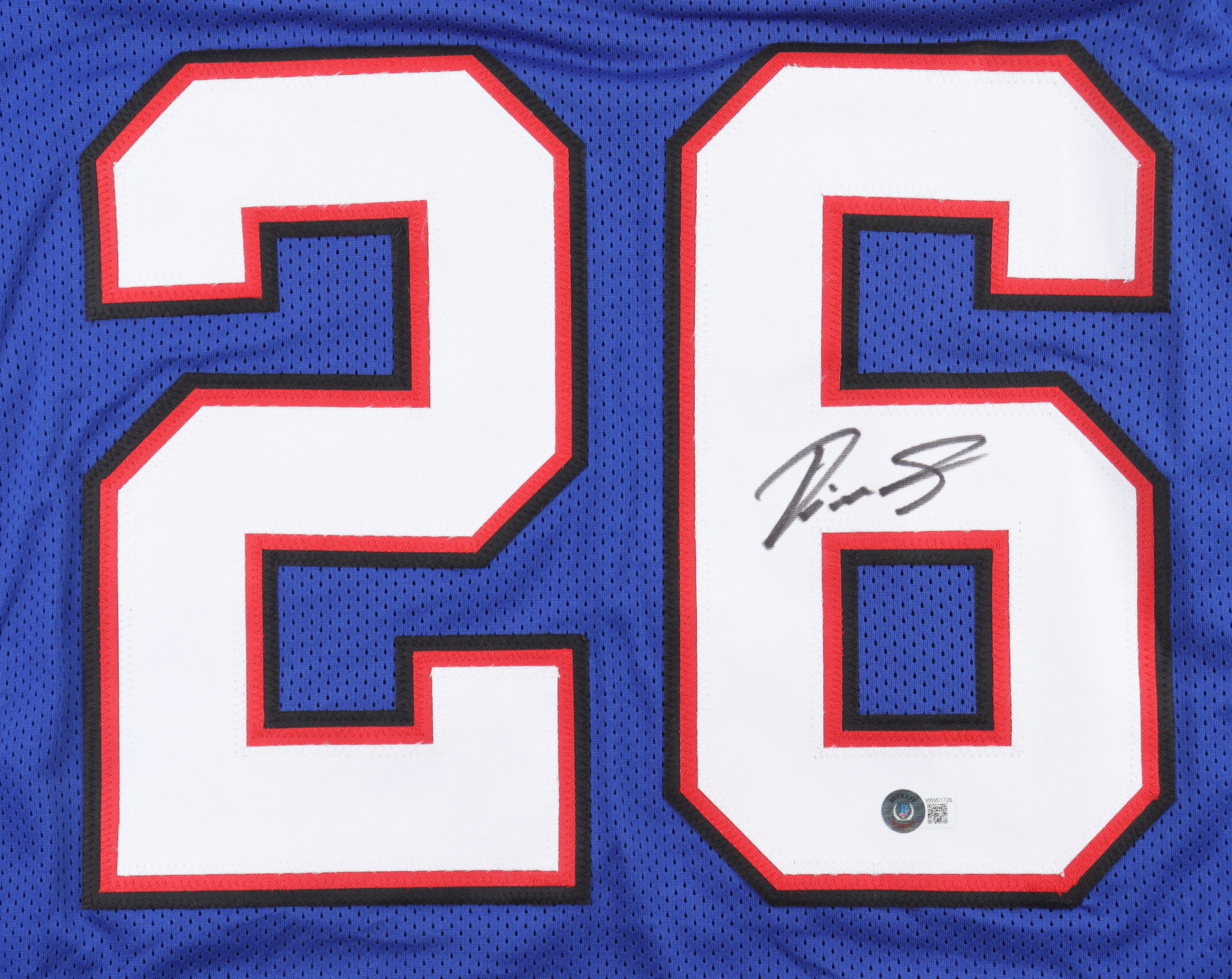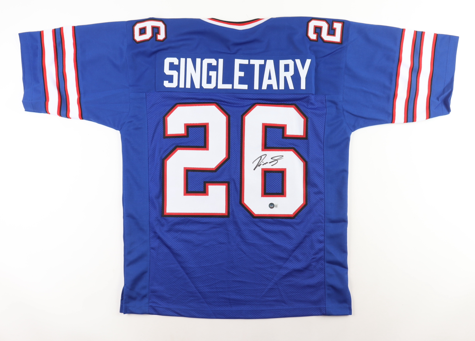 Custom jersey with everything sewn on, size XL. Hand-signed by Devin Singletary.