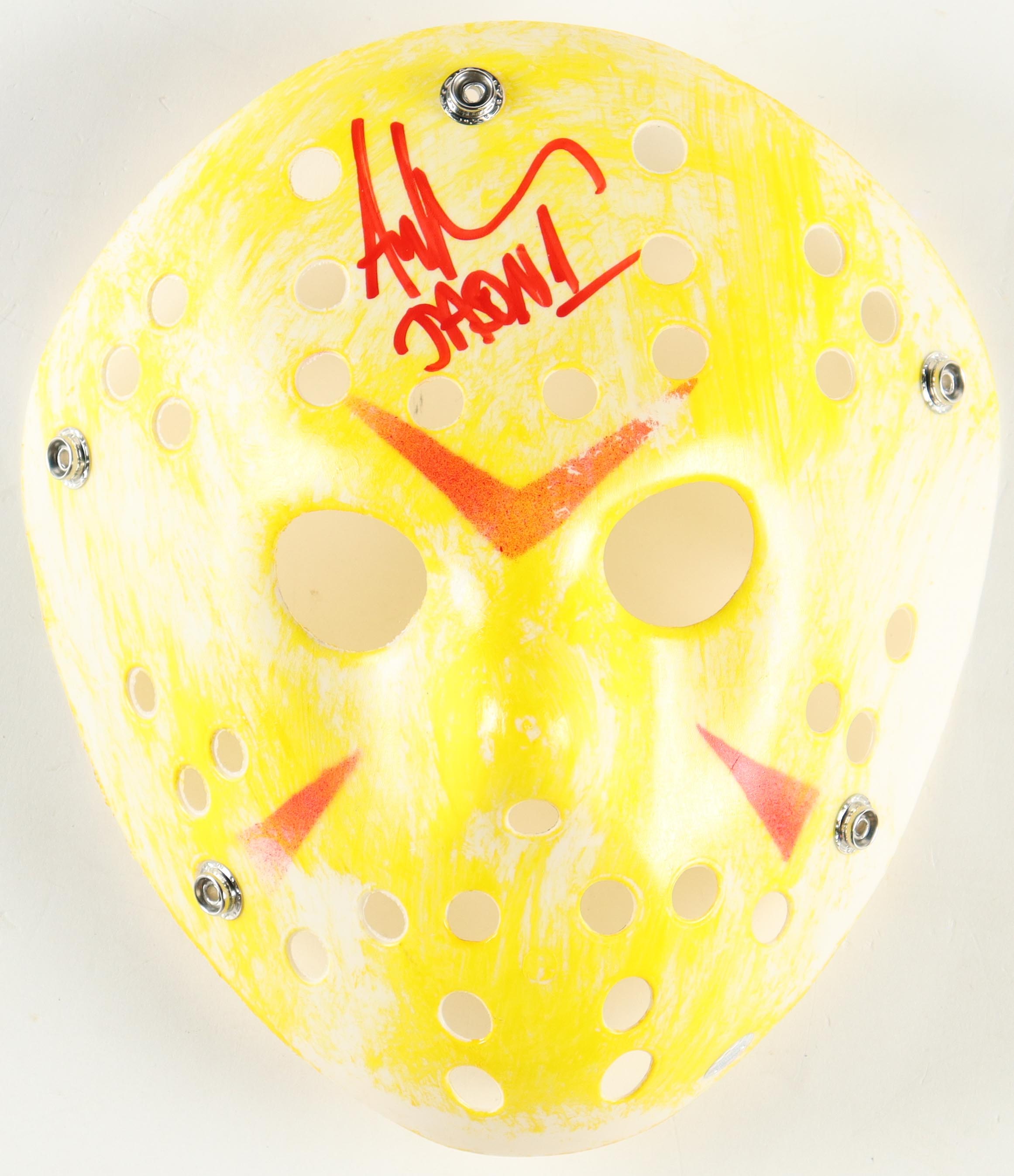 "Friday the 13th" Jason Voorhees full-size replica mask. Hand-signed and inscribed by Ari Lehman (Jason Voorhees).