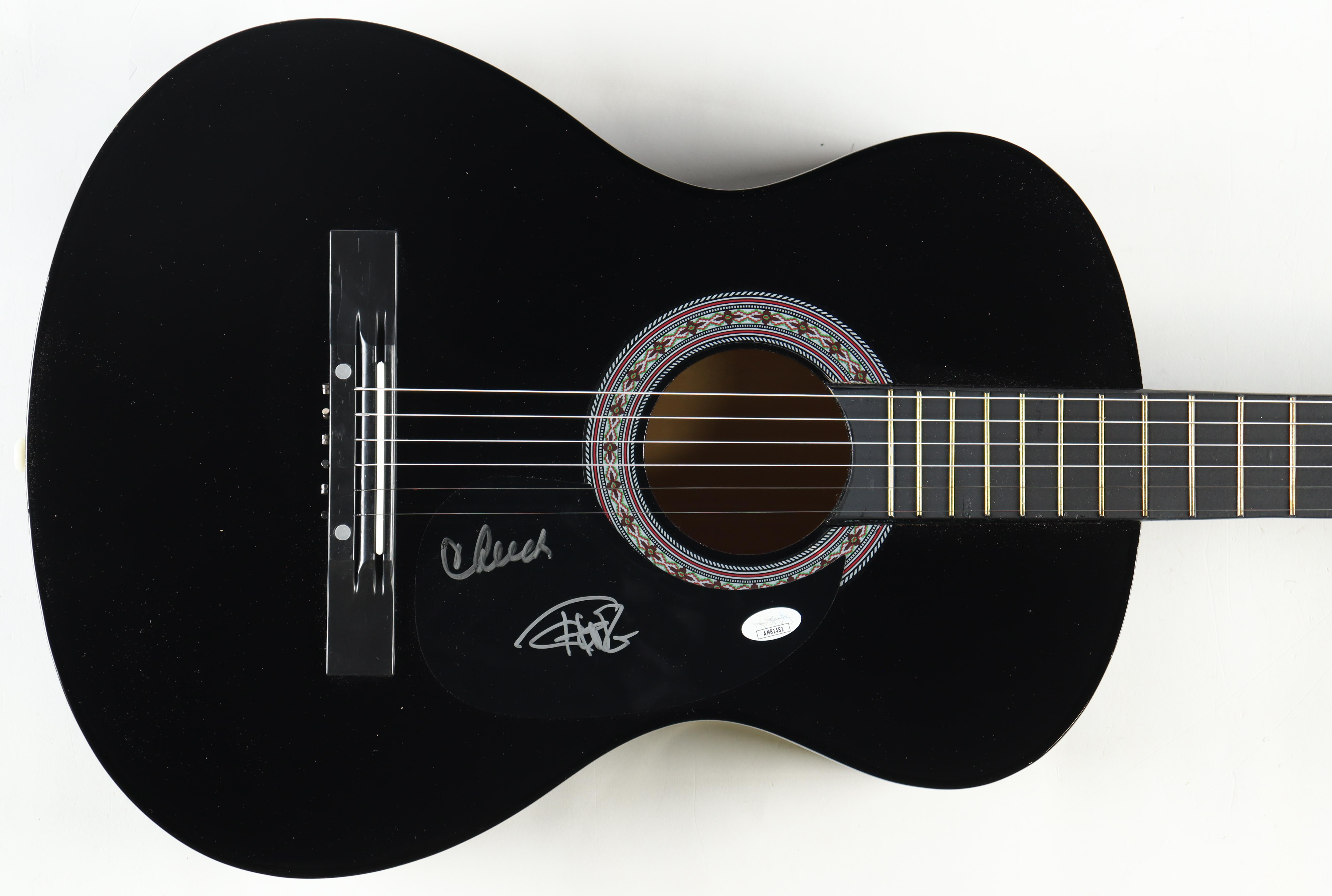 Zeny Acoustic Guitar measures approximately 38" in length and has been hand-signed on the pick-guard by Cheech Marin and Tommy Chong. Please note, there is scuffing on the pick-guard.