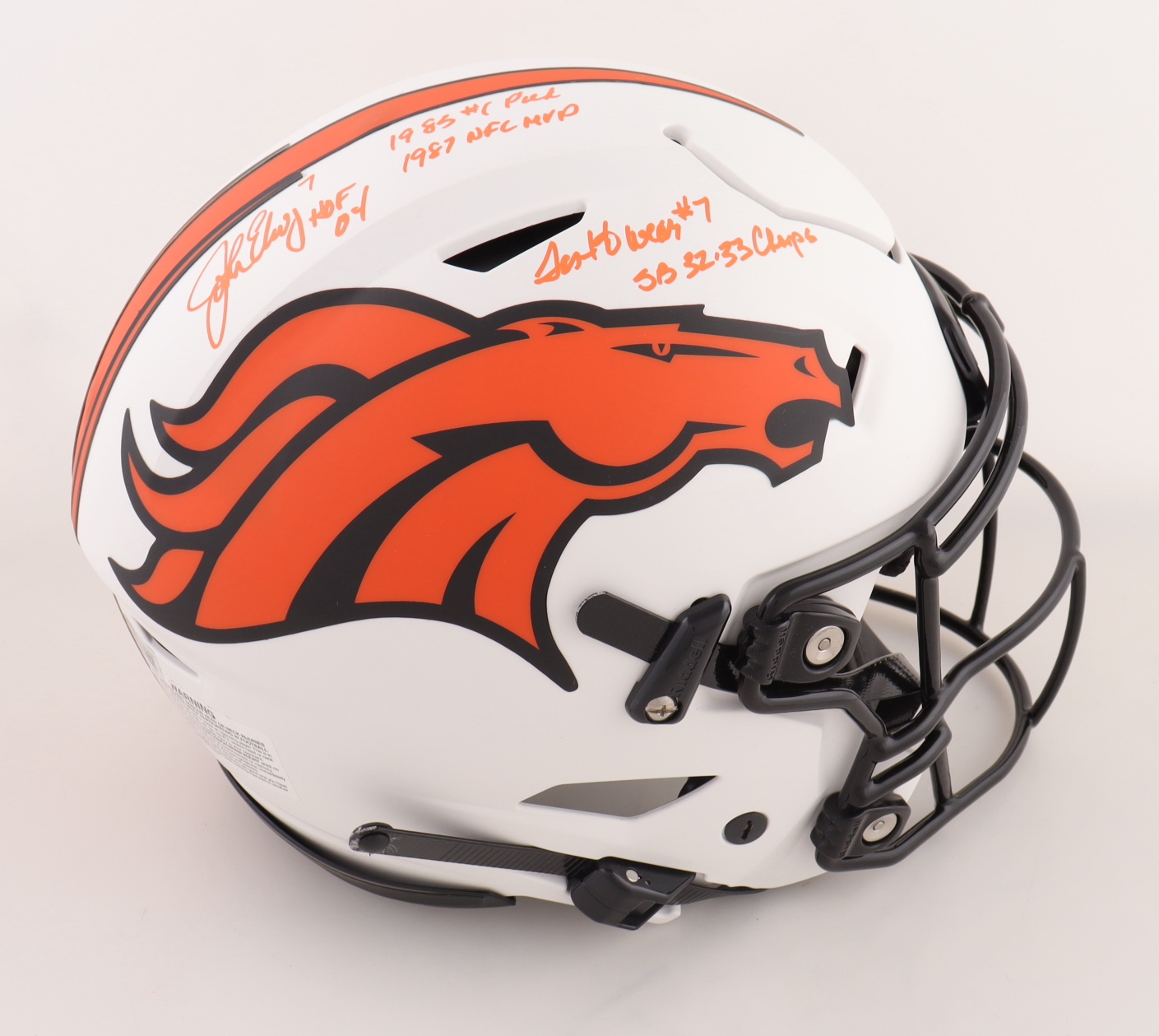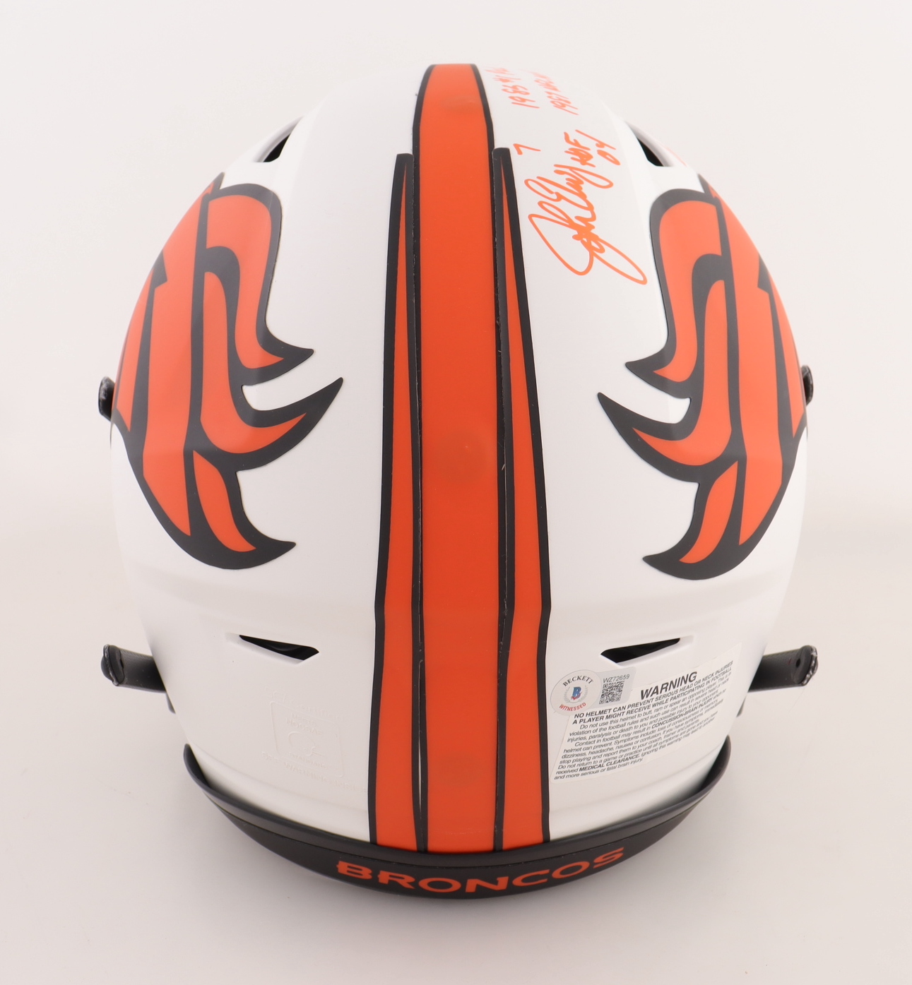 John Elway Signed Broncos Full-Size Authentic On-Field Lunar Eclipse Alternate SpeedFlex Helmet With Multiple Stat Inscriptions (Beckett)