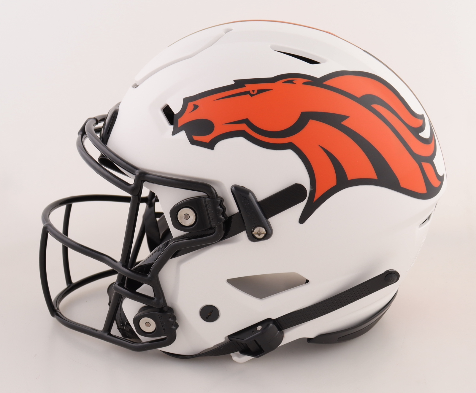Riddell Denver Broncos full-size authentic on-field lunar eclipse alternate Speedflex helmet has been hand-signed and inscribed by John Elway (HOF).