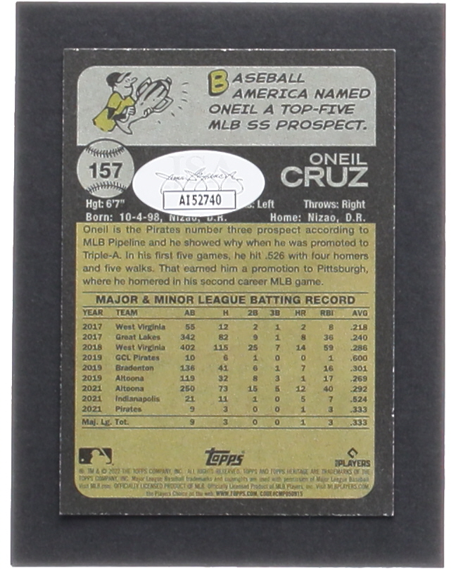 Oneil Cruz Signed 2022 Topps Heritage #157 RC (JSA)