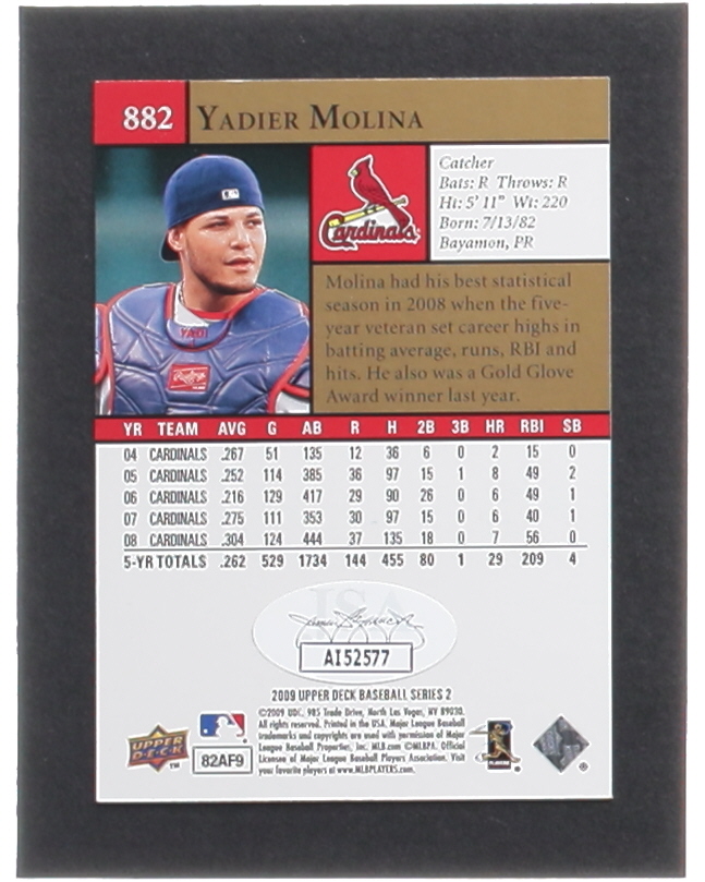 Yadier Molina Signed 2009 Upper Deck #882 (JSA)