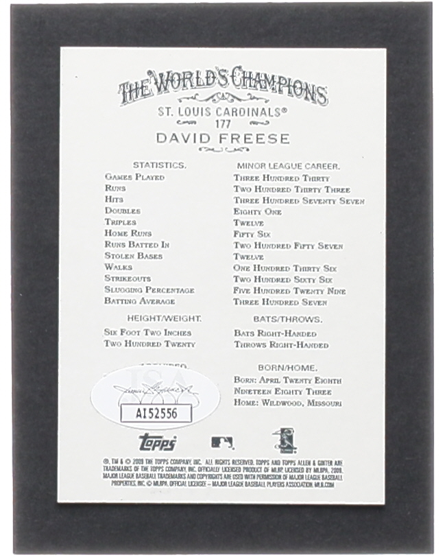 David Freese Signed 2009 Topps Allen and Ginter #177 RC (JSA)