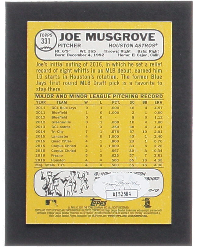 Joe Musgrove Signed 2017 Topps Heritage #331 RC (JSA)