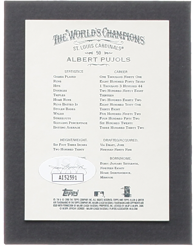 Albert Pujols Signed 2008 Topps Allen and Ginter #50 (JSA)