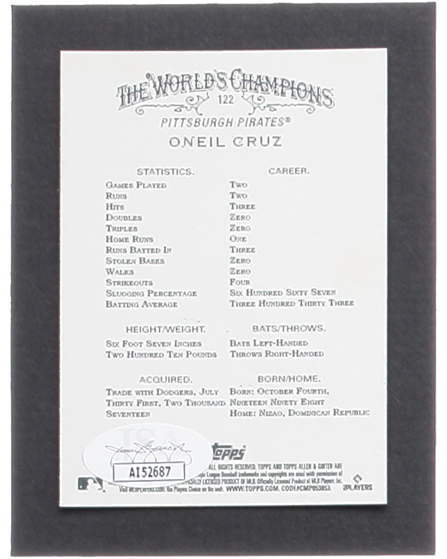 Card has been hand-signed by Oneil Cruz (Pittsburgh Pirates). Please see photos for more details regarding the condition of the card.
