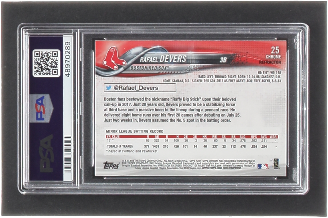 Rafael Devers 2018 Topps Chrome Pink Refractors #25 RC (PSA 10)