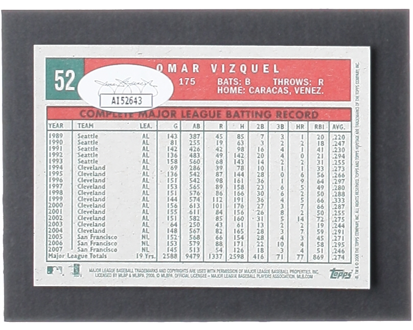 Omar Vizquel Signed 2008 Topps Heritage #52 GB SP (JSA)
