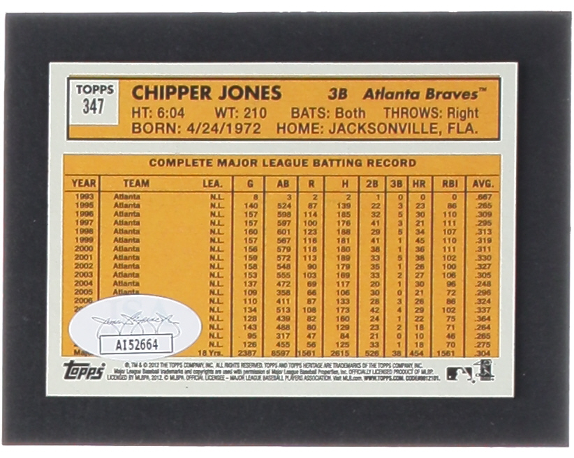 Chipper Jones Signed 2012 Topps Heritage #347 (JSA)