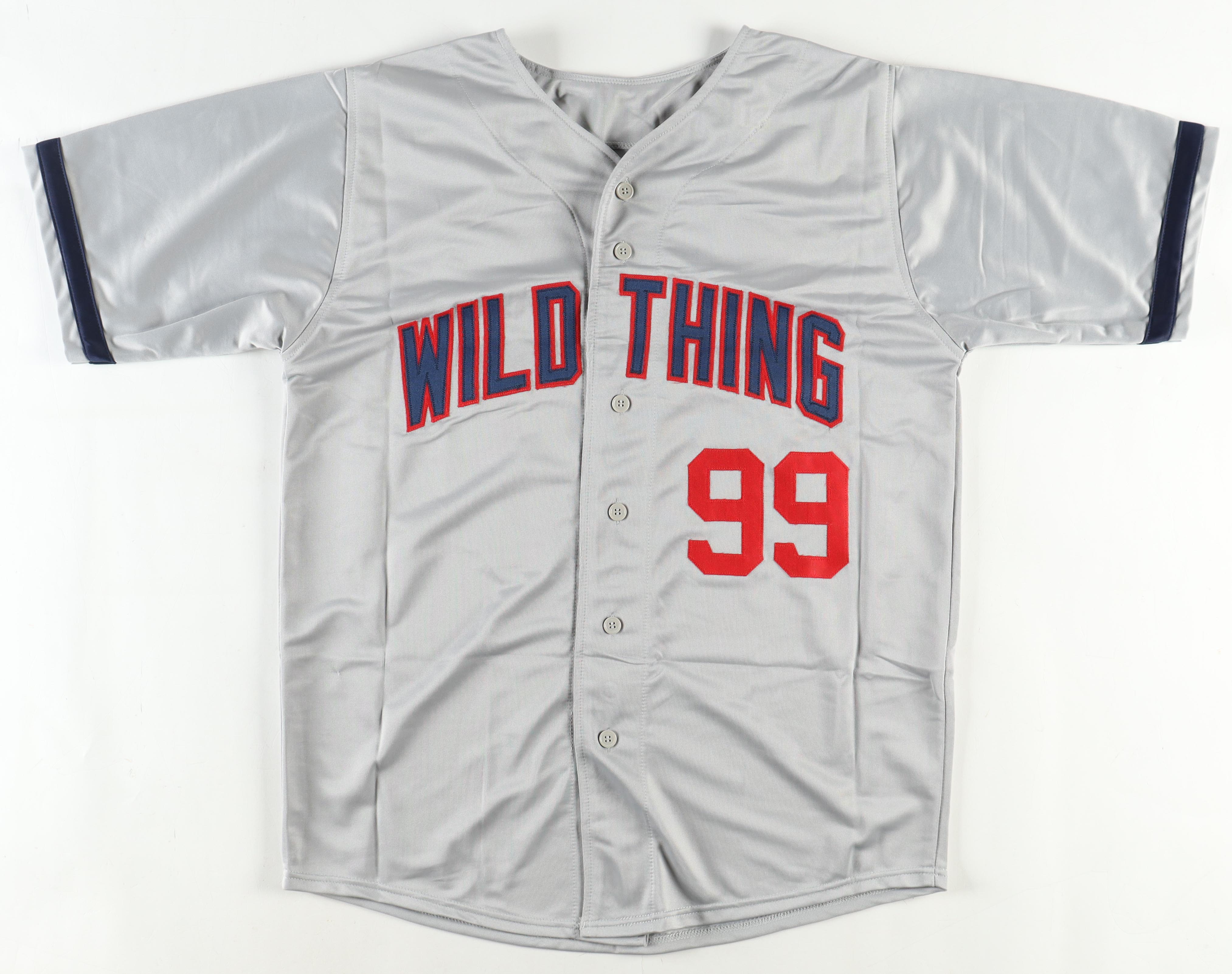Custom jersey with everything is sewn on, size XL. Hand-signed by Charlie Sheen (Ricky "Wild Thing" Vaughn).