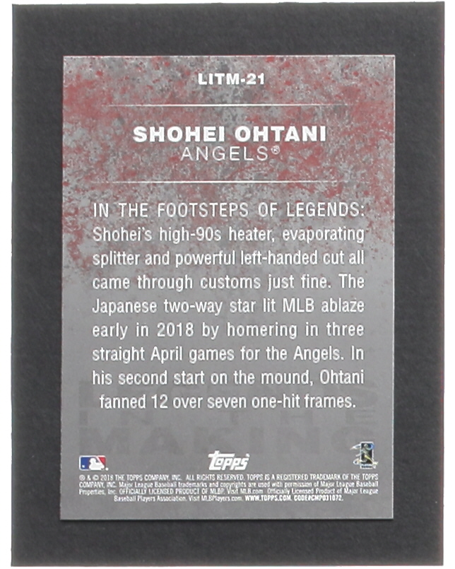 Shohei Ohtani 2018 Topps Update Legends in the Making #LITM21 RC