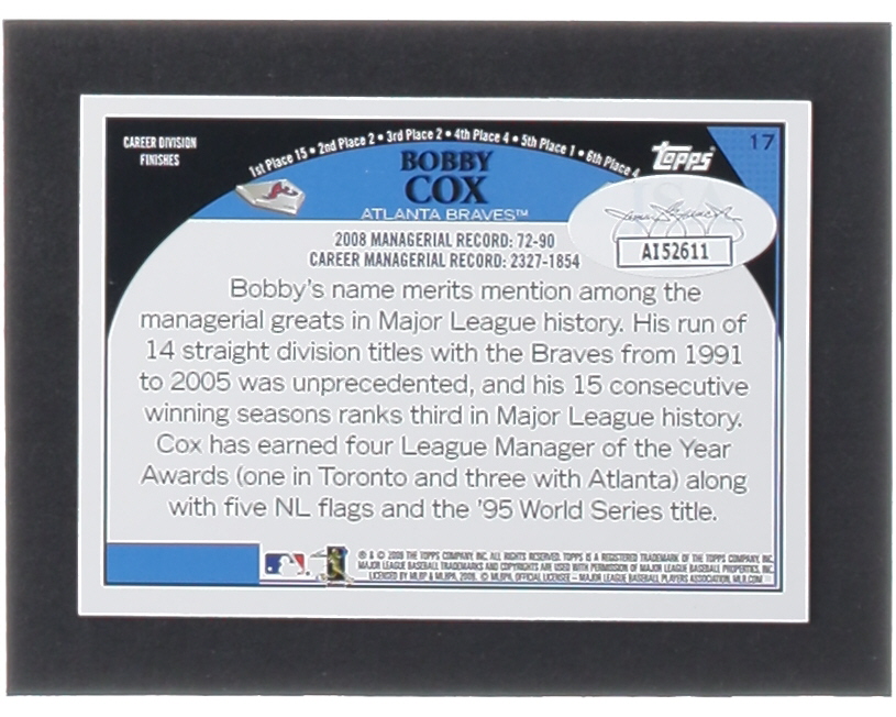 Bobby Cox Signed 2009 Topps #17 MG (JSA)
