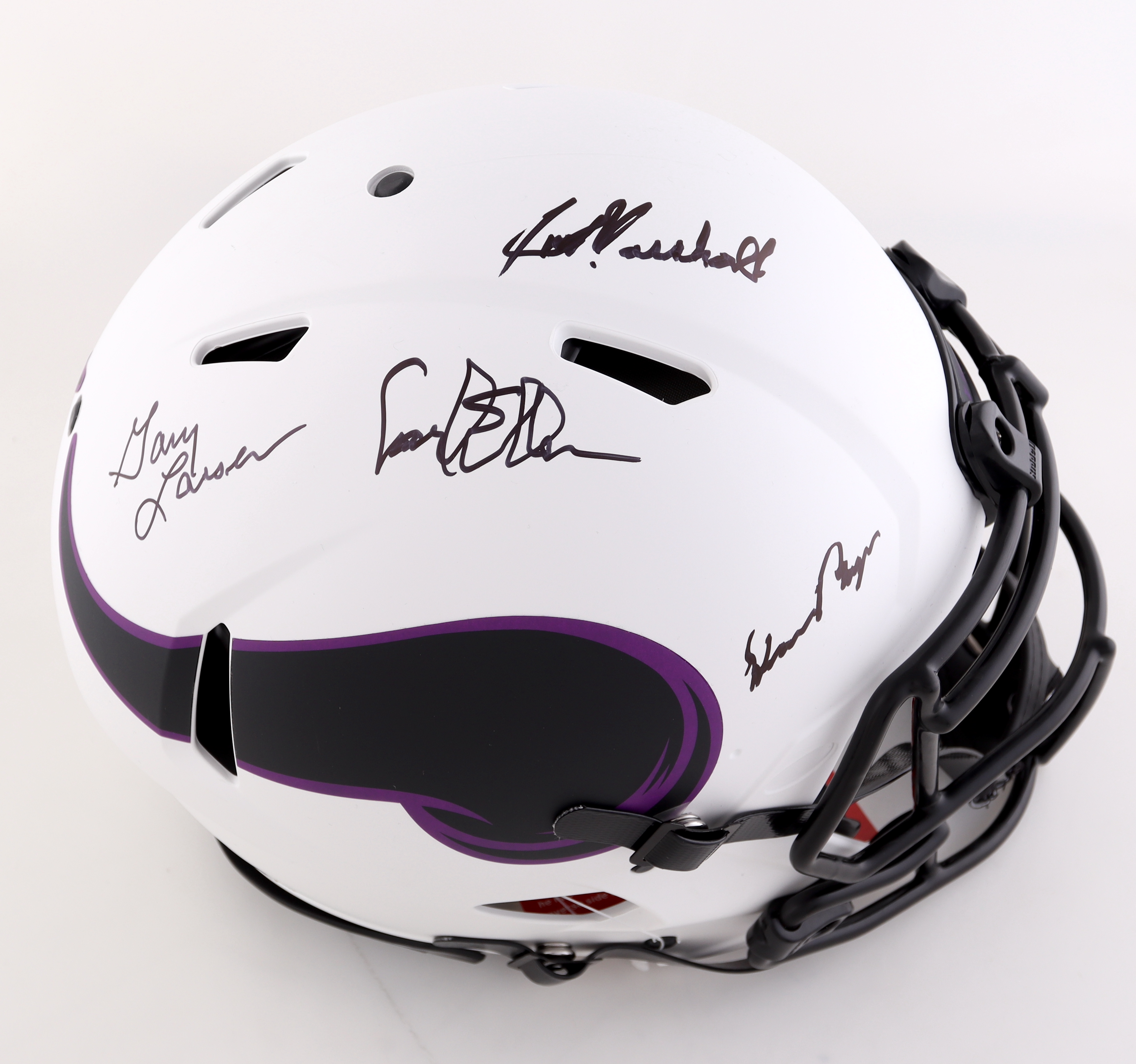 Riddell Minnesota Vikings full-size authentic on-field Lunar Eclipse Alternate Speed helmet. Hand-signed by Alan Page (HOF), Carl Eller (HOF), Jim Marshall & Gary Larsen.
