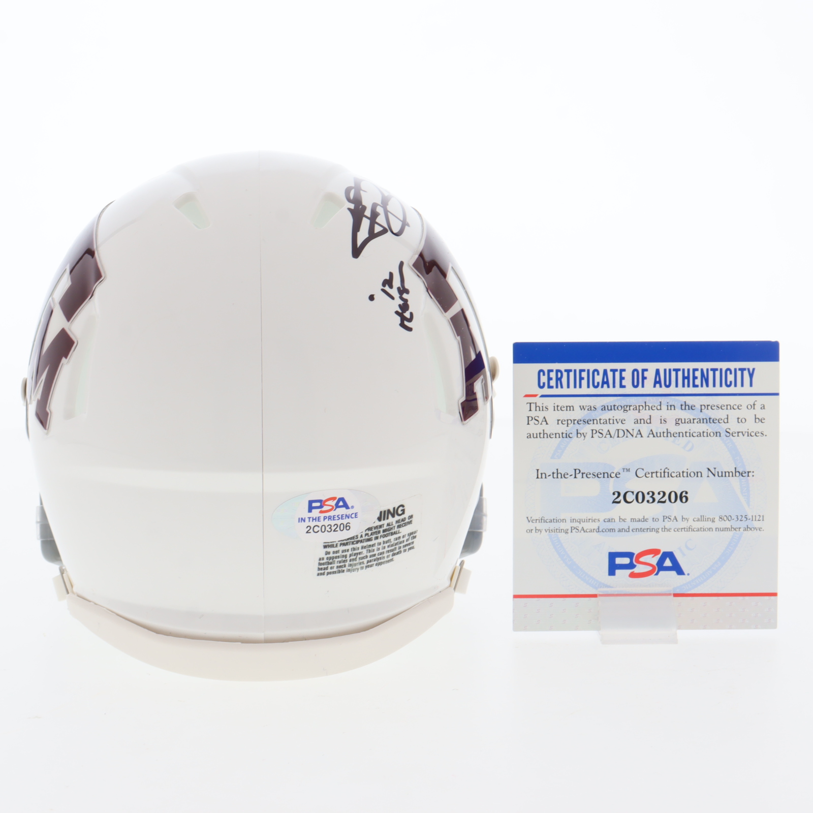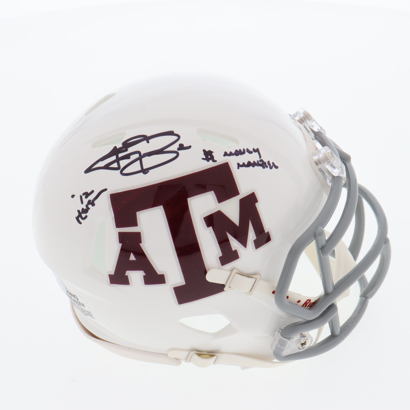 Riddell Texas A&M Aggies Speed mini helmet has been hand-signed and inscribed by Johnny Manziel.