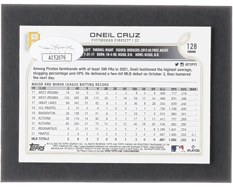 Oneil Cruz Signed 2022 Topps Chrome #128 RC (JSA)