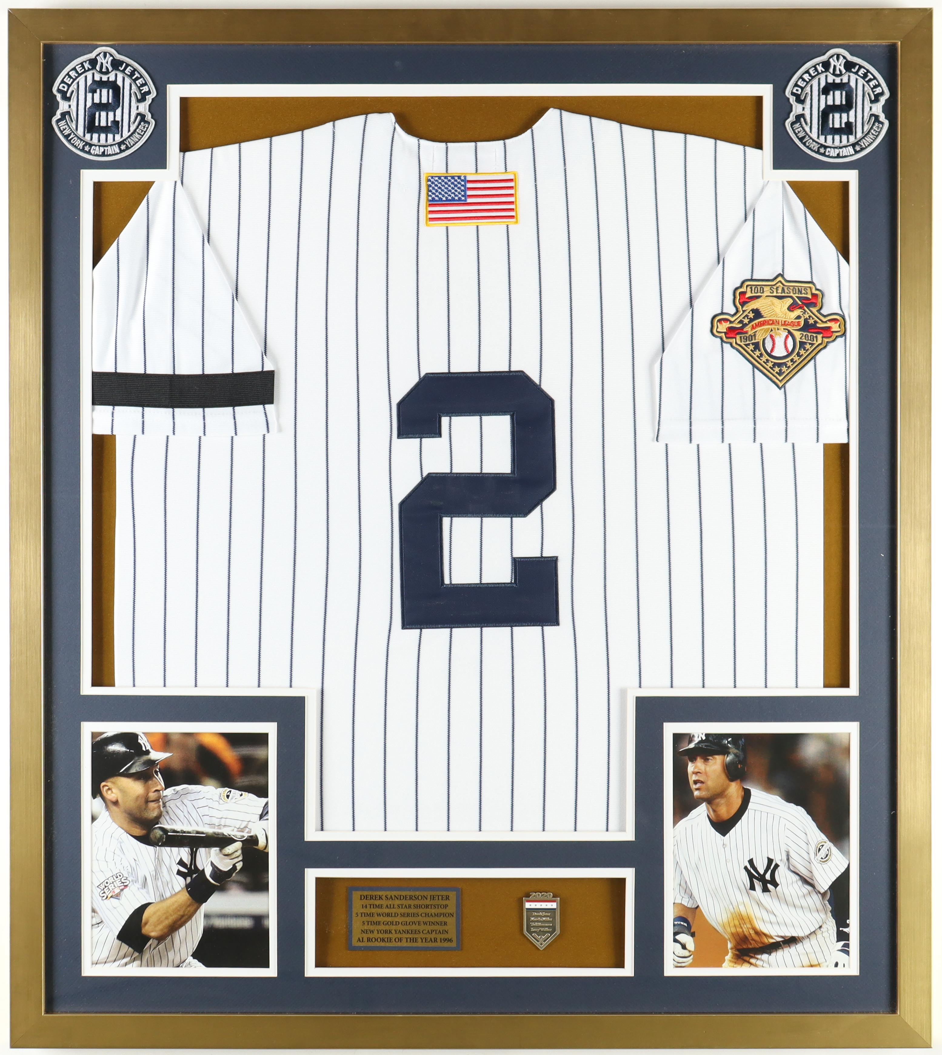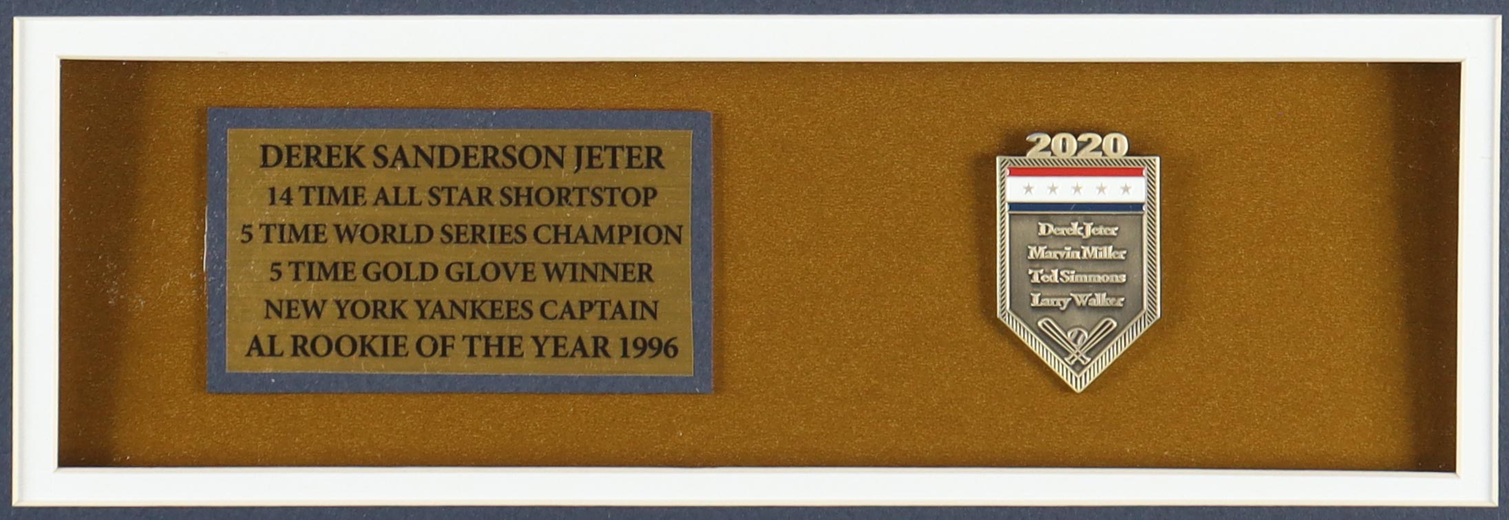 Derek Jeter Yankees Custom Framed Jersey Display with 2020 Hall of Fame Induction Roster Pin
