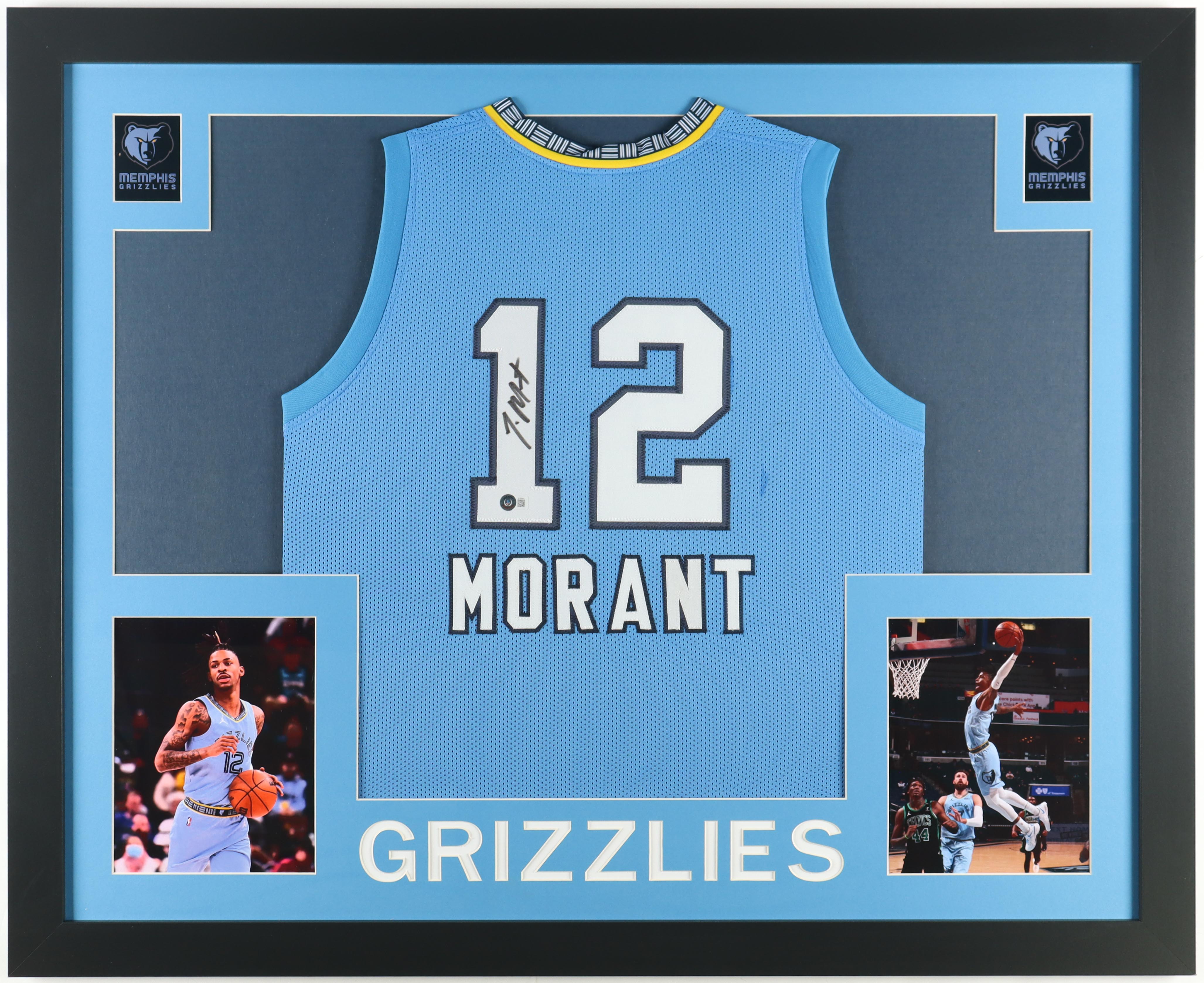 Custom frame measures approximately 35" x 43" in size and features a jersey that has been hand-signed by Ja Morant.