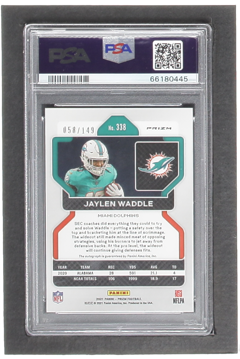 Jaylen Waddle 2021 Panini Prizm Rookie Autographs Prizms Red Wave #338 #058/149 RC (PSA 9 | Auto 10)