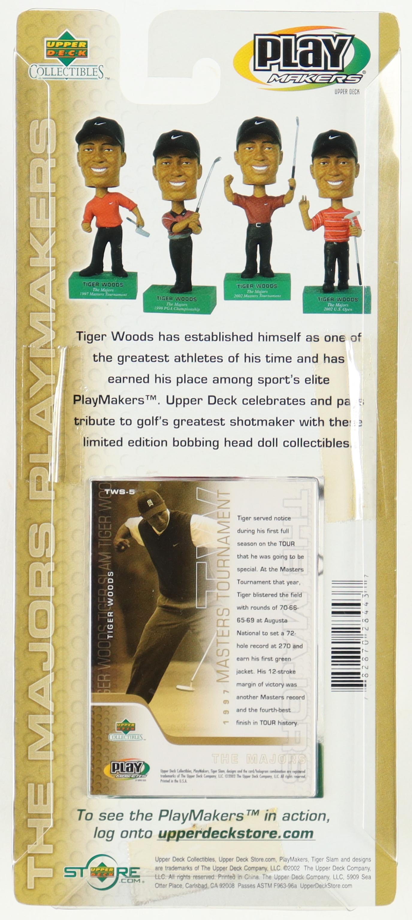 Tiger Woods 2002 Masters Tournament Bobblehead with 2002 Upper Deck Tiger Woods The Majors #TWM5 Card
