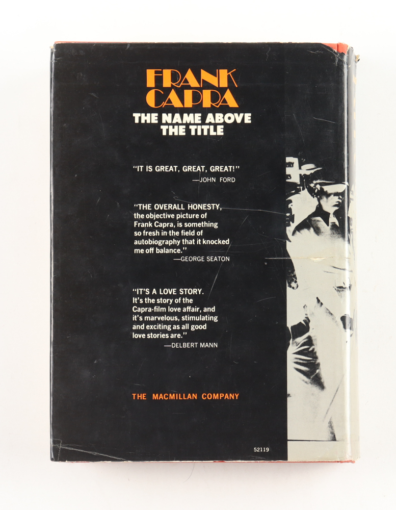 "Frank Capra: The Name Above The Title" hardcover book. Hand-signed on an inside page by Frank Capra (D. 1991).